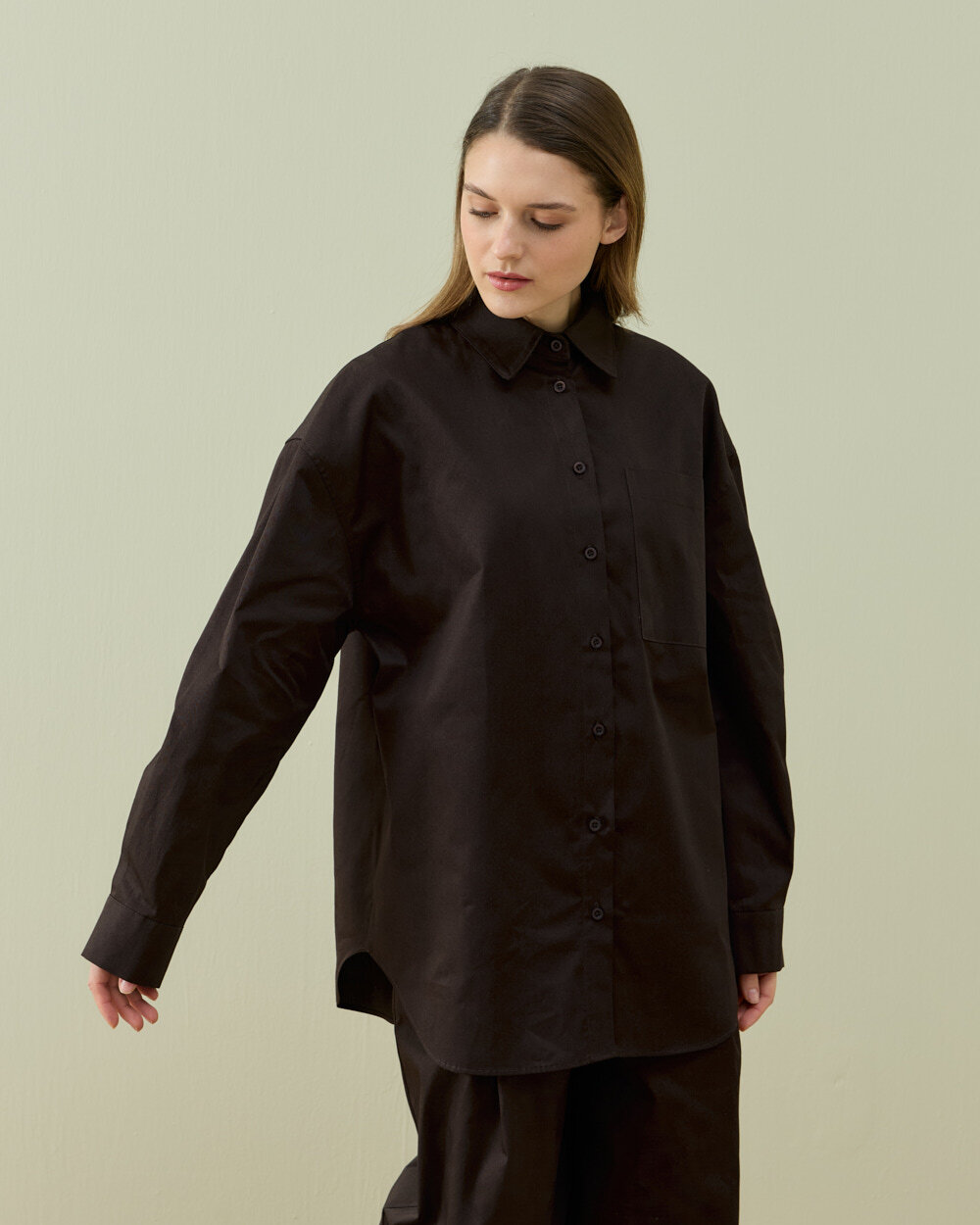 %100 pamuktan üretilen kumaşı, yumuşak dokusu ve nefes alabilen yapısıyla gün boyu konfor sunar. Oversize kesimi sayesinde 34-44 beden aralığındaki herkes için mükemmel uyum sağlar. 78 cm ön boyu ve 88 cm arka boyu ile hem uzun hem de rahat bir görünüm kazandırır. Geniş kesimli bel, göğüs ve basen ölçüleri ile rahatça hareket edebilir, kendinizi gün boyu rahat hissedebilirsiniz.