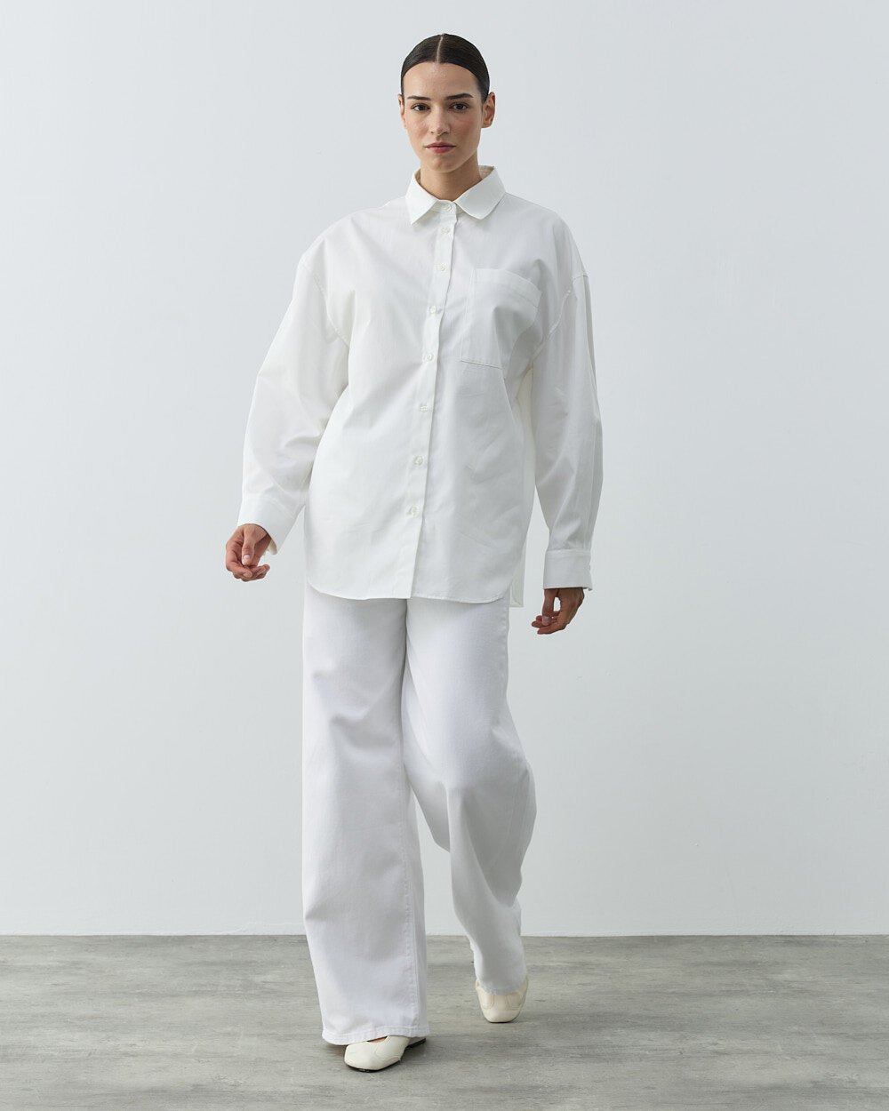 %100 pamuktan üretilen kumaşı, yumuşak dokusu ve nefes alabilen yapısıyla gün boyu konfor sunar. Oversize kesimi sayesinde 34-44 beden aralığındaki herkes için mükemmel uyum sağlar. 78 cm ön boyu ve 88 cm arka boyu ile hem uzun hem de rahat bir görünüm kazandırır. Geniş kesimli bel, göğüs ve basen ölçüleri ile rahatça hareket edebilir, kendinizi gün boyu rahat hissedebilirsiniz.