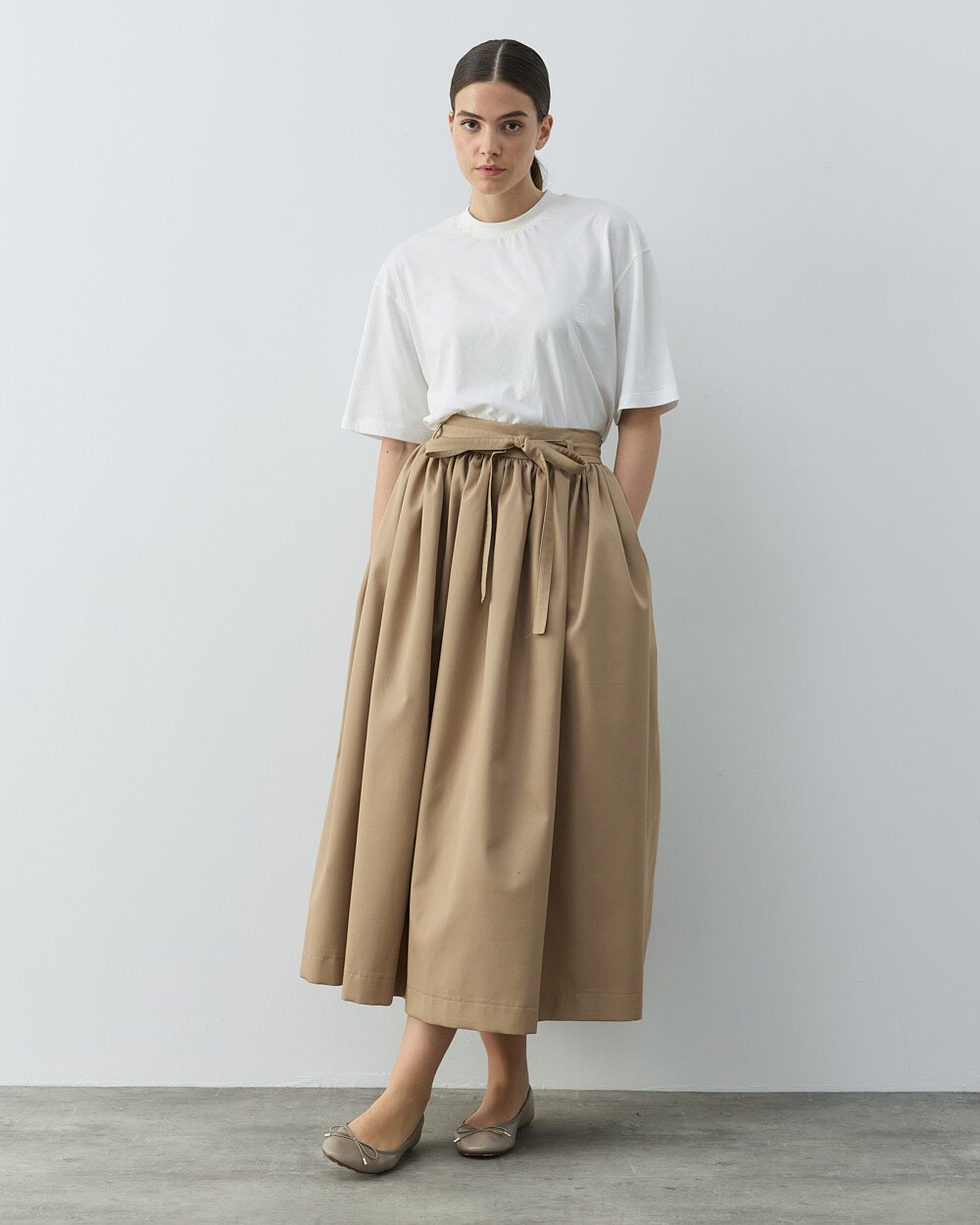 Bol büzgülü ve yanlardan ceplidir.
