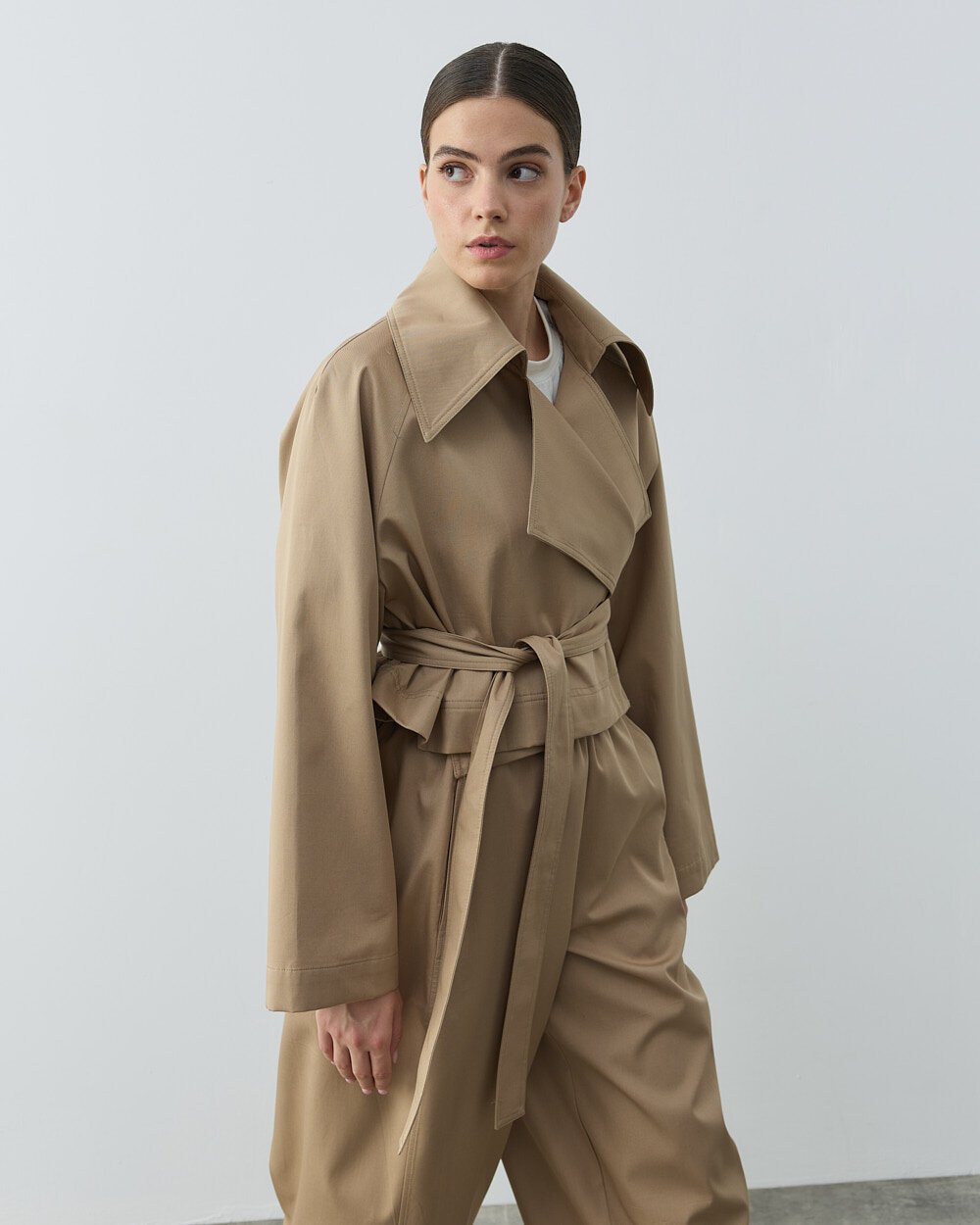 Detay: Kısa boyu ve modern kesimiyle dinamik bir siluet sunar. Hafif ve dayanıklı kumaşı sayesinde mevsim geçişlerinde konforlu kullanım sağlar. Belden bağlama detayı vücuda uyum sağlarken şık ve dengeli bir duruş kazandırır. Geniş yakası ve sade formu zamansız bir stil oluşturur. Günlük kombinlerden şehir şıklığına kadar geniş kullanım alanı sunar. Pantolon ,elbise ve eteklerle kolayca kombinlenebilen fonksiyonel bir dış giyim parçasıdır.