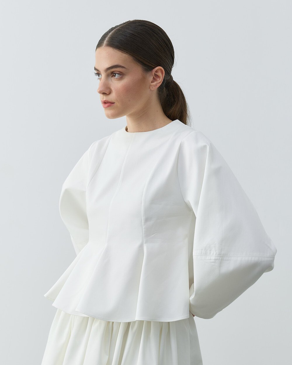 Detay: Peplum formu ile bele oturan şık bir siluet sunar. Volanlı yapısı sayesinde hareketli ve feminen bir görünüm kazandırır. Kulplu tasarımı ürüne karakteristik bir detay eklerken, kısa boy kesimi modern kombinler için ideal bir denge sağlar. Paper gabardin kumaşı sayesinde tok duruşlu ve konforlu bir kullanım sunar. Günlük şıklıkta olduğu kadar özel gün kombinlerinde de rahatlıkla tercih edilebilir.