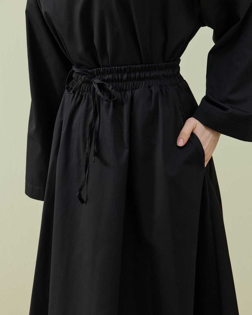 Detay:Volanlı inen, rahat kalıp.Belden lastikli ve iplidir.İstenen bedene göre ayarlanabilir. Yanlardan ceplidir. Etek ucu kısmında nervür dikiş detayı vardır.