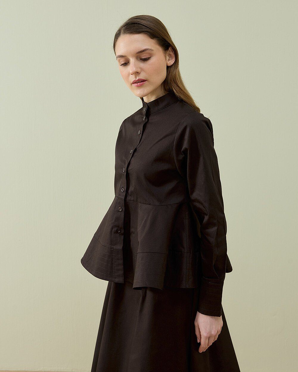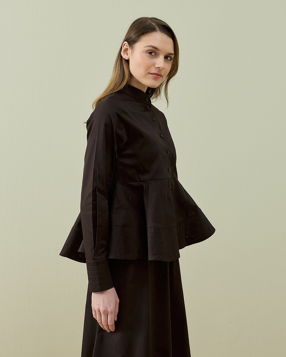 Minimal ve şık tasarımıyla öne çıkan bu gömlek, günlük ve klasik kombinlerde rahatlıkla kullanılabilir. Bel kısmındaki hafif volan formu ürüne feminen bir duruş kazandırırken, düğmeli ön yapısı kullanım kolaylığı sağlar. Dik yaka detayı ile modern bir görünüm sunar. Gün boyu konforlu kullanım sağlayan yapısıyla dolabınızın kurtarıcı parçalarından biri olmaya aday.