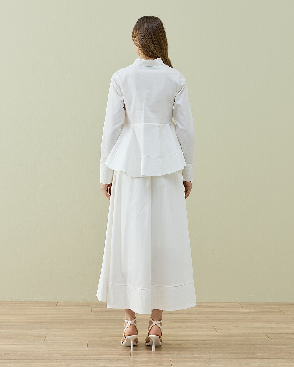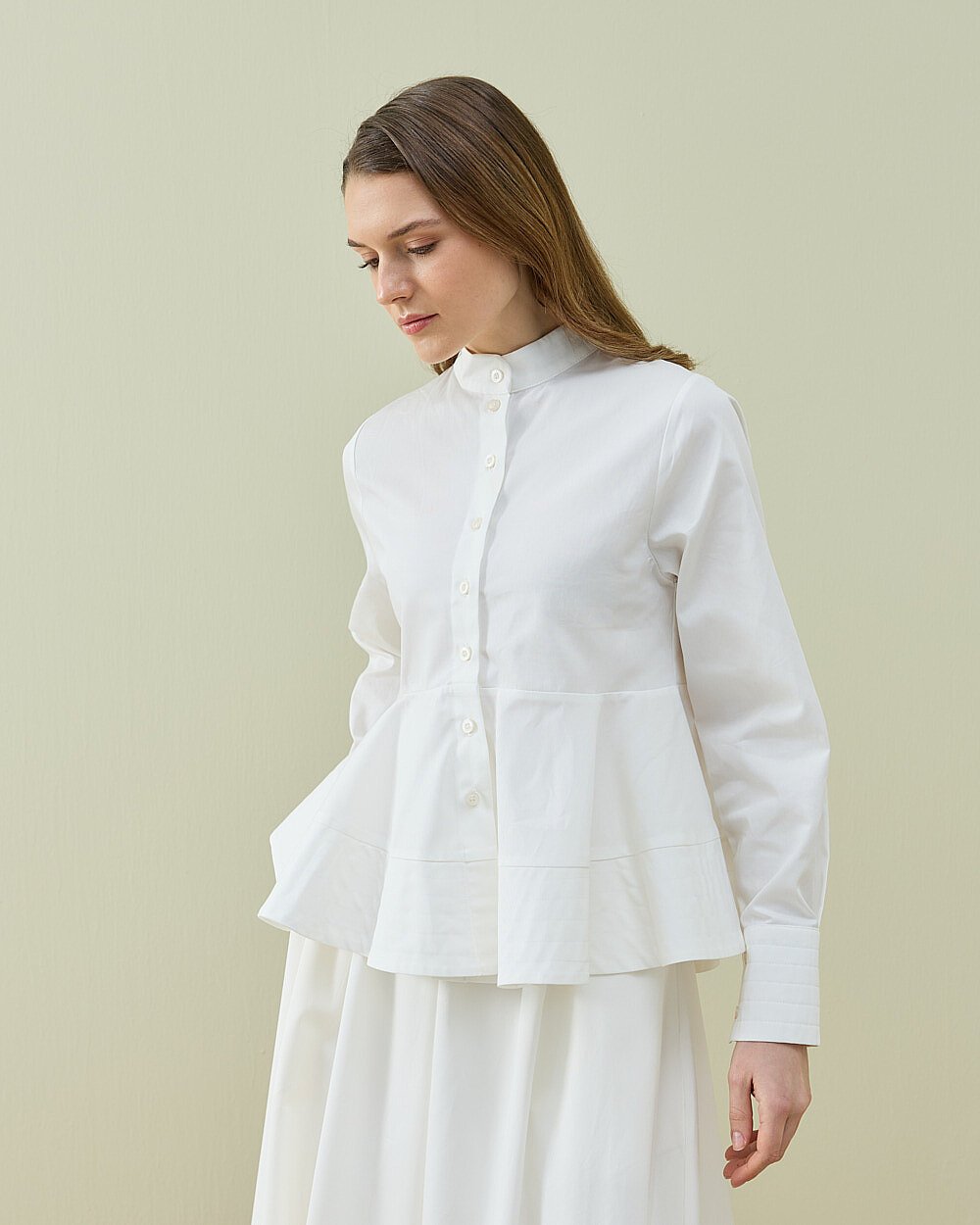 Minimal ve şık tasarımıyla öne çıkan bu gömlek, günlük ve klasik kombinlerde rahatlıkla kullanılabilir. Bel kısmındaki hafif volan formu ürüne feminen bir duruş kazandırırken, düğmeli ön yapısı kullanım kolaylığı sağlar. Dik yaka detayı ile modern bir görünüm sunar. Gün boyu konforlu kullanım sağlayan yapısıyla dolabınızın kurtarıcı parçalarından biri olmaya aday.