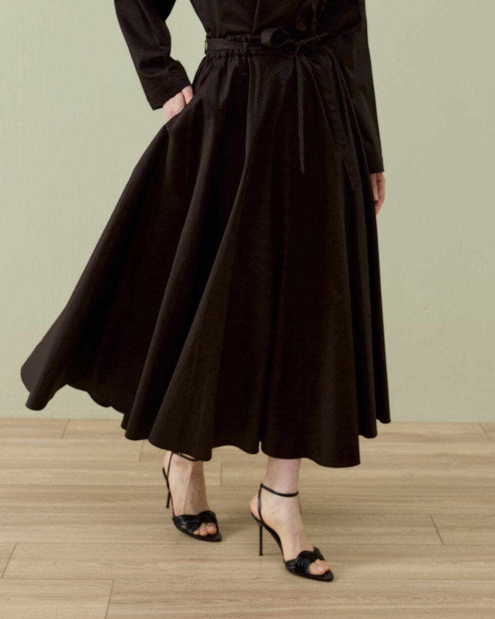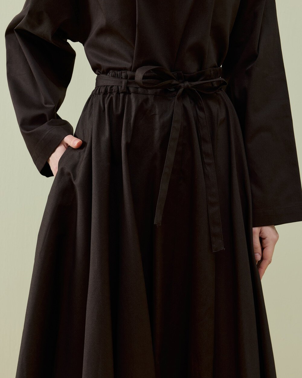 Detay: Paper gabardin dokuma kumaştan üretilmiştir. Tam kloş kalıp yapısı sayesinde hareketli ve dengeli bir duruş sunar. Ön patlı tasarımı ile temiz ve sade bir görünüm elde edilmiştir. Bel kısmında yer alan kuşak detayı, bele göre ayarlanabilir kullanım imkânı sağlar. Yüksek bel formu vücut hatlarını dengelerken, etek boyu günlük ve şehir kullanımına uygun şekilde tasarlanmıştır. Dokuma yapısı formunu korur, gün boyu konforlu bir kullanım sunar. Farklı üst giyim ürünleri ile kolaylıkla kombinlenebilir.