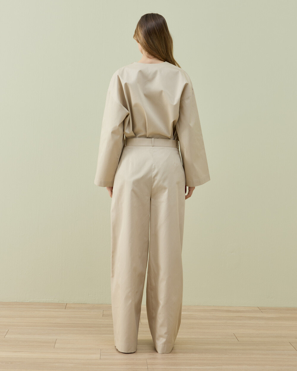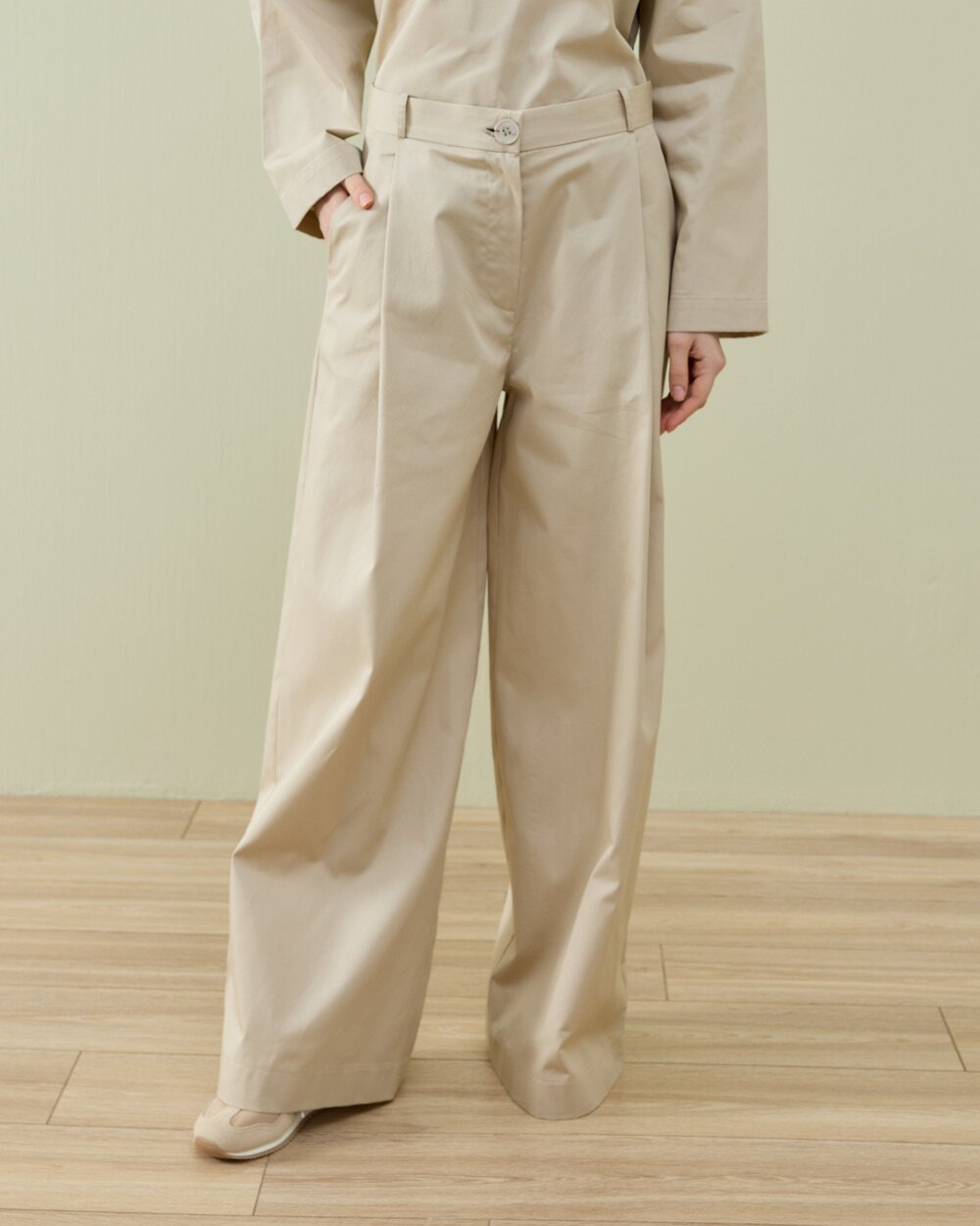 Detay: Ön bölümde yer alan tek pile detayı ile hacimli ve dengeli bir siluet sunar. Wide leg formu sayesinde belden aşağı rahat bir düşüş sağlar. Yüksek bel yapısı vücut oranını dengelerken, klasik kapama detayı ve yan cepler fonksiyonel kullanım sunar. Günlük ve ofis kombinlerine uyum sağlayacak şekilde tasarlanmıştır. Rahat kalıp yapısı hareket özgürlüğünü destekler.