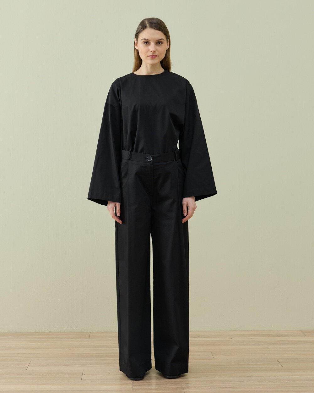 Detay: Ön bölümde yer alan tek pile detayı ile hacimli ve dengeli bir siluet sunar. Wide leg formu sayesinde belden aşağı rahat bir düşüş sağlar. Yüksek bel yapısı vücut oranını dengelerken, klasik kapama detayı ve yan cepler fonksiyonel kullanım sunar. Günlük ve ofis kombinlerine uyum sağlayacak şekilde tasarlanmıştır. Rahat kalıp yapısı hareket özgürlüğünü destekler.