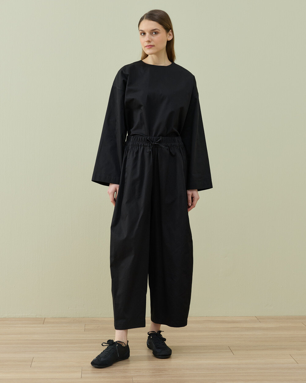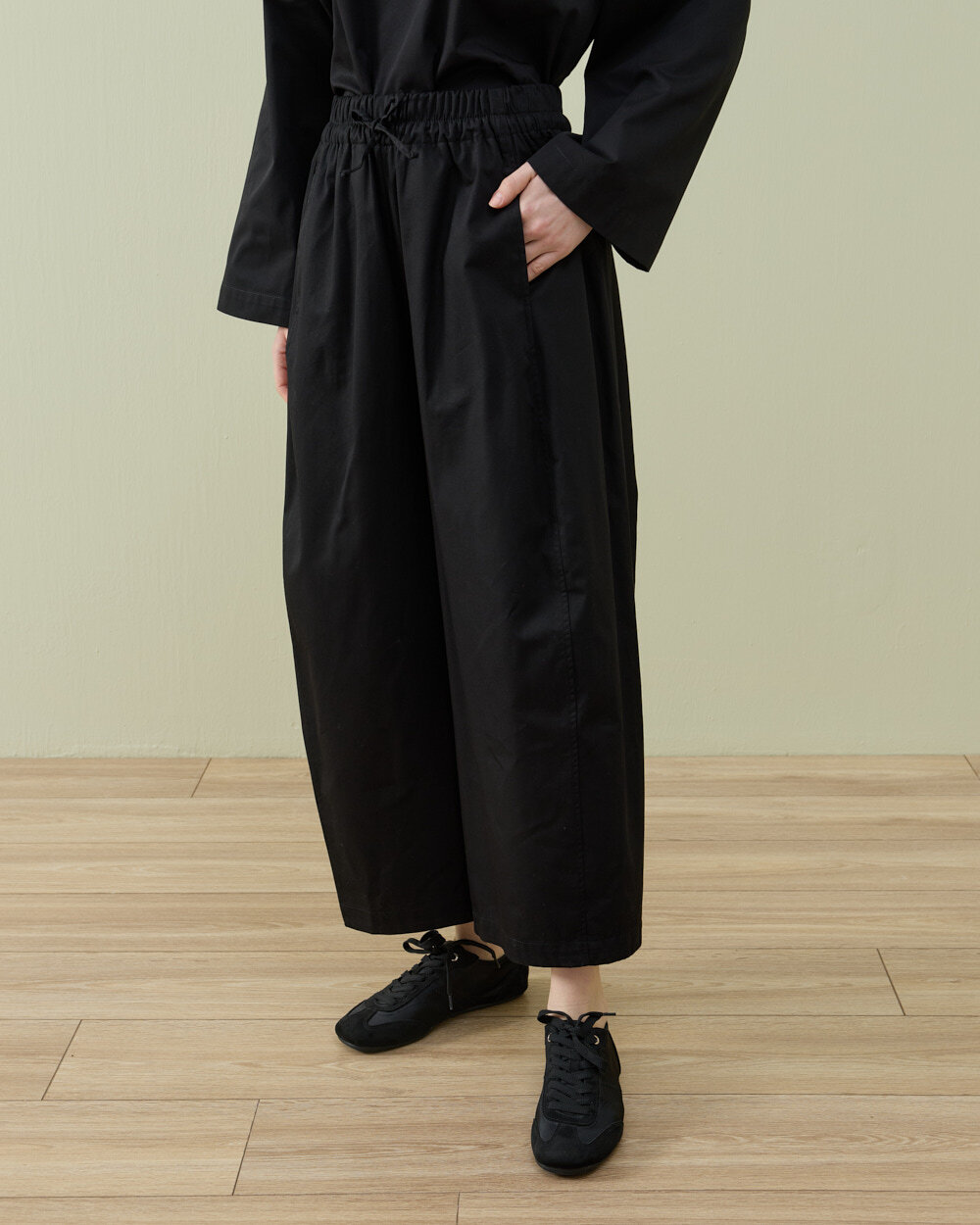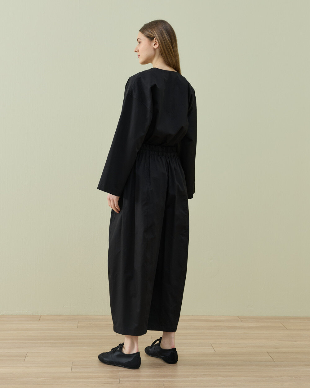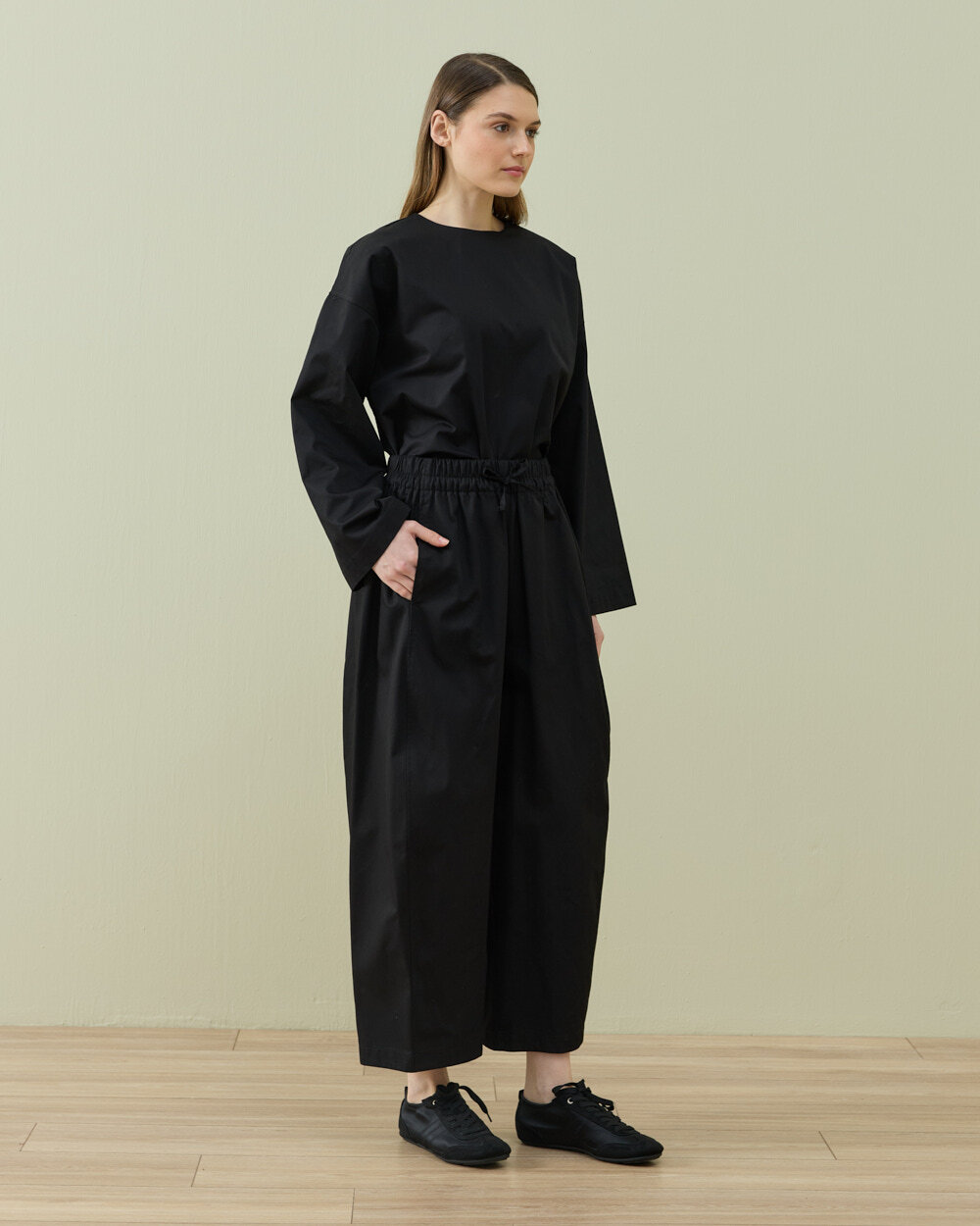 Detay: Gabardin kumaştan üretilen bu pantolon, tok ve dayanıklı yapısıyla formunu uzun süre koruyan bir kullanım sunar. Bel formu ve lastikli bel yapısı sayesinde vücuda uyum sağlar ve konforlu bir oturuş oluşturur. Bel kısmında yer alan bağcık detayı ayarlanabilirlik kazandırırken, yan ekli konstrüksiyonu ile hacimli ve dengeli bir siluet elde edilir. Ekstra barrel fit kalıbı, paçaya doğru daralmayan ancak kontrollü bir genişlik sunan modern bir duruş sağlar. Bilek boy uzunluğu ile hem günlük hem şehir stiline uyumlu, rahat ve fonksiyonel bir pantolon formudur.
