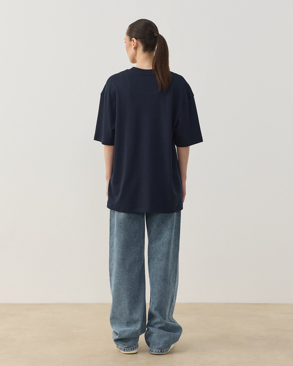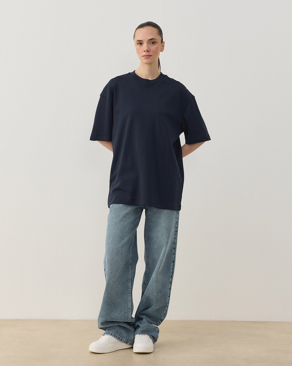 Premium Doubleface Oversize Relax Tshirt Lacivert - Aybikestil %58 İndirim +4 Renk
