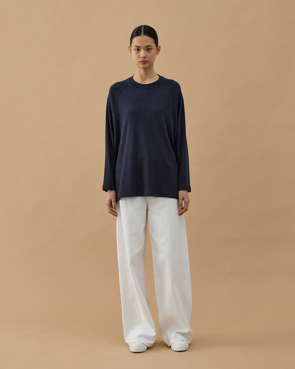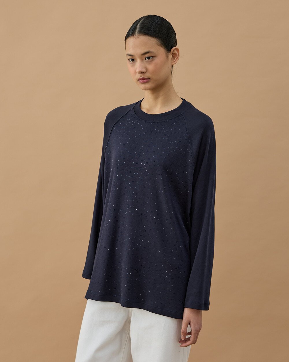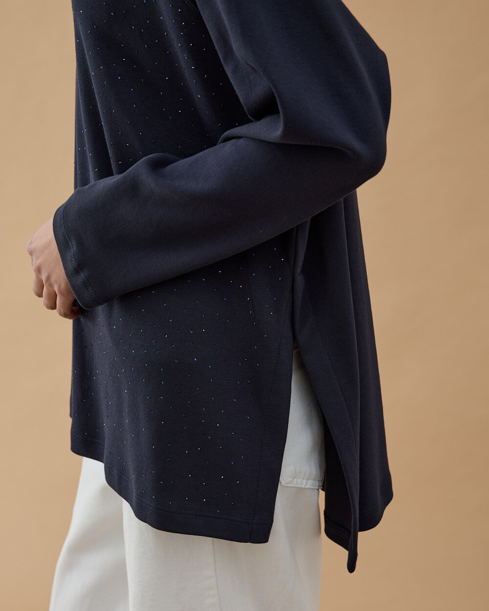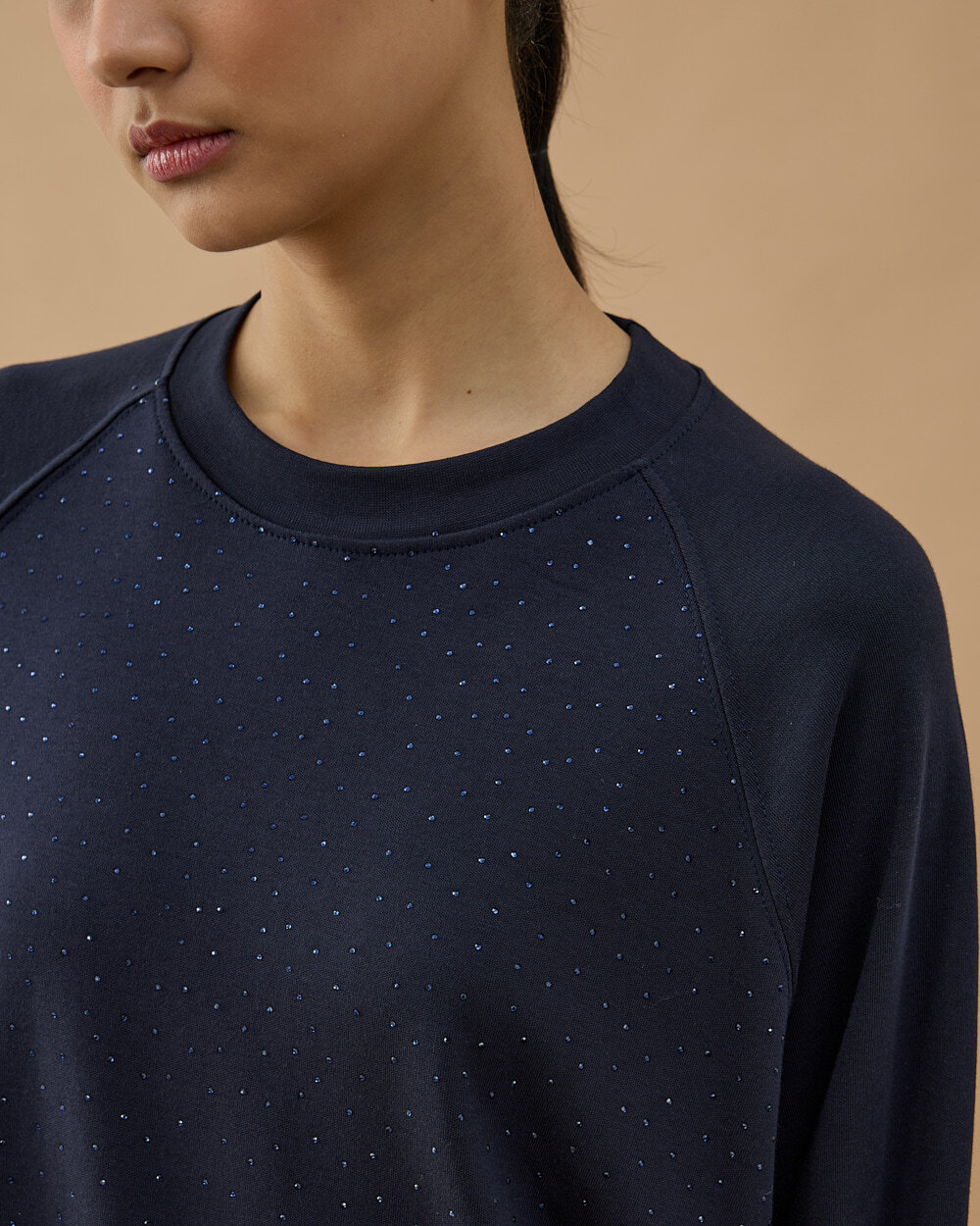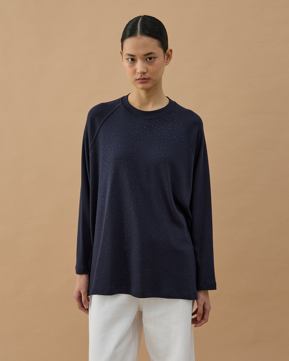 Penye İnterlok Taşlı Relax Bluz – Lacivert