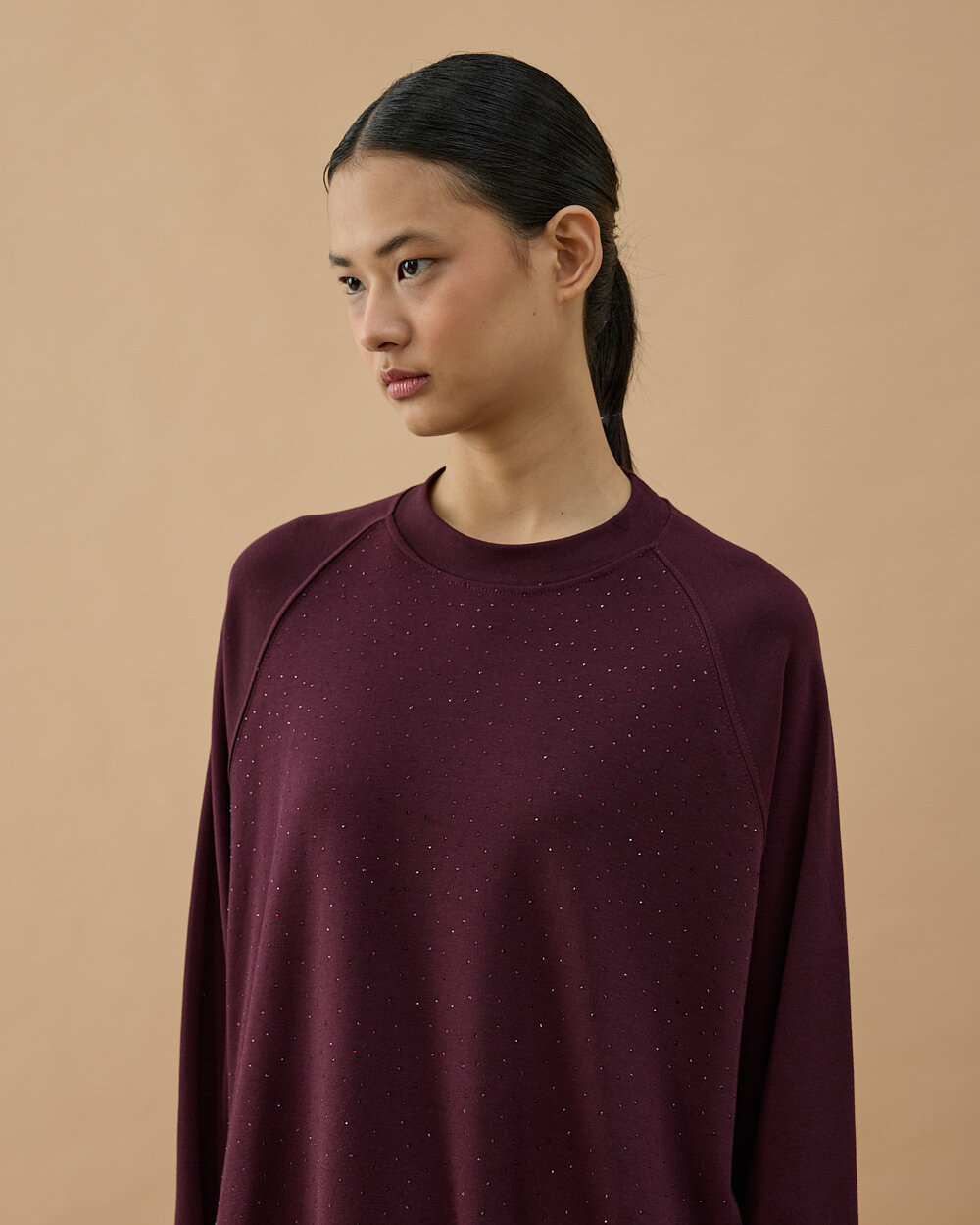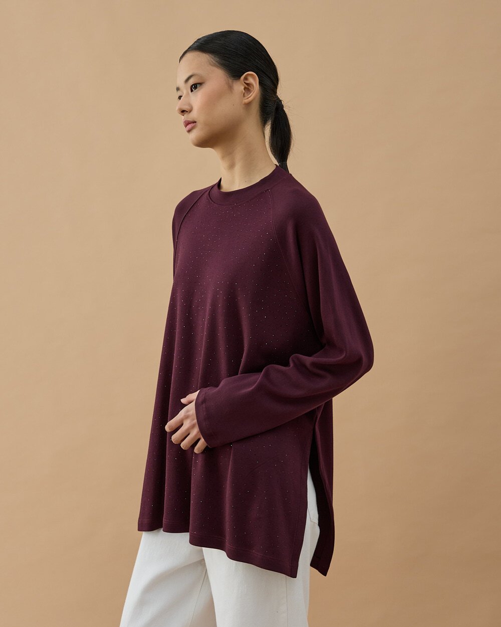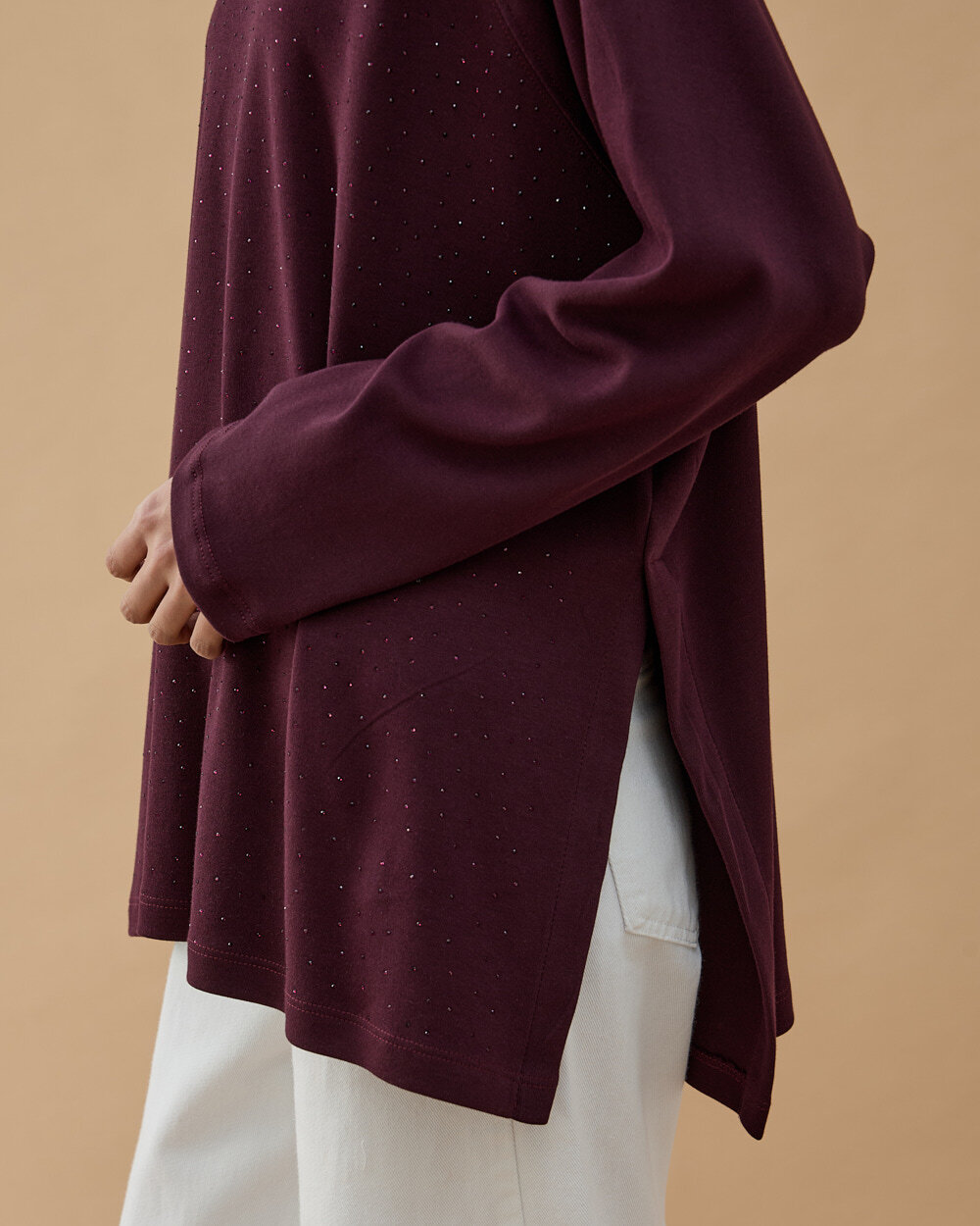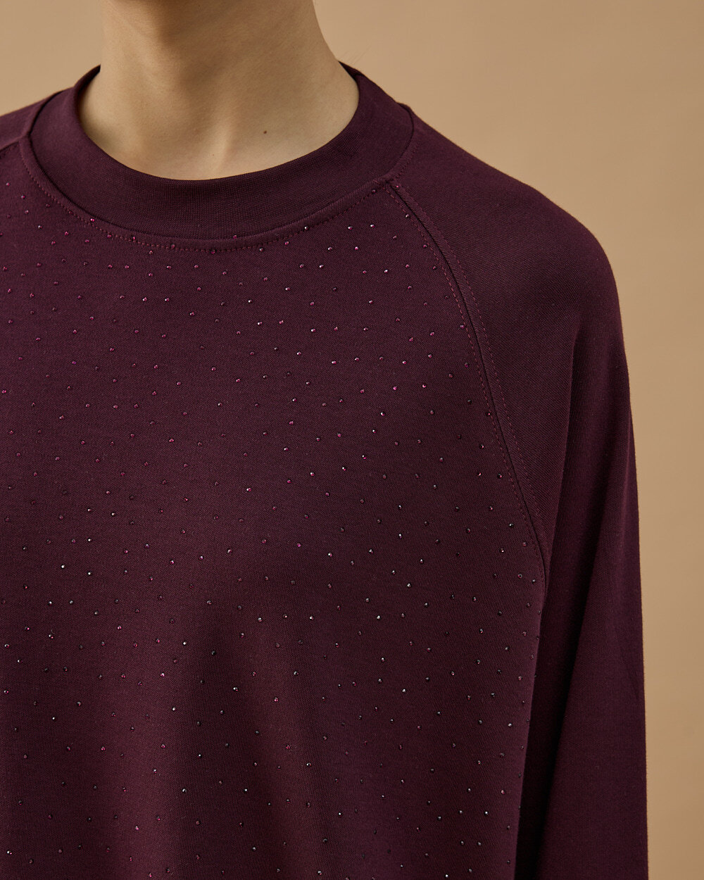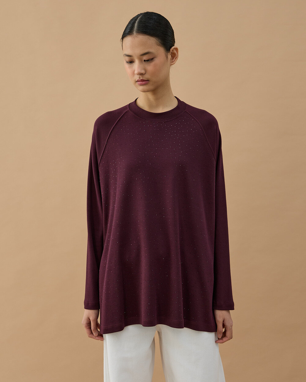 Penye İnterlok Taşlı Relax Bluz – Mürdüm