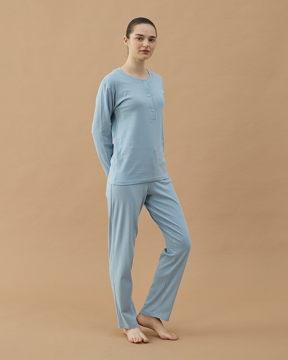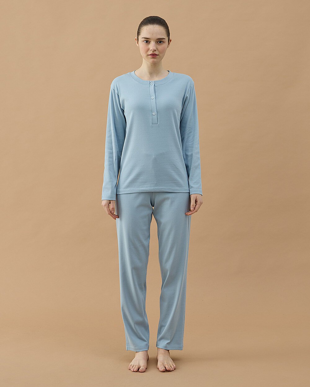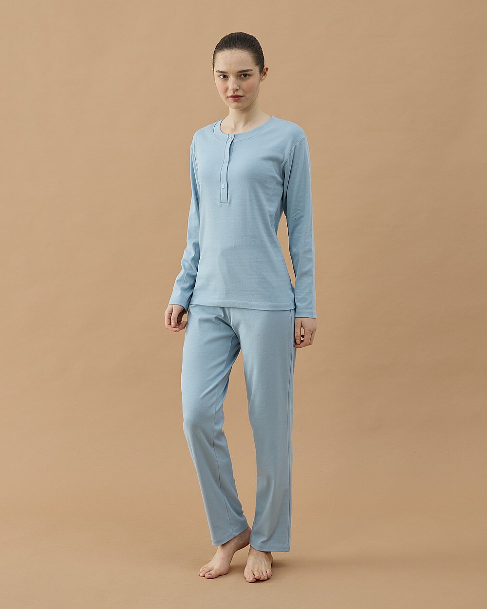 Günlük konforu ön planda tutan bu takım, yumuşak dokulu penye kumaşı sayesinde gün boyu rahat kullanım sunar. Üst parçada yer alan düğme detaylı yaka tasarımı, sade ve şık bir görünüm kazandırırken; alt parça rahat kalıbı ile hareket özgürlüğü sağlar.