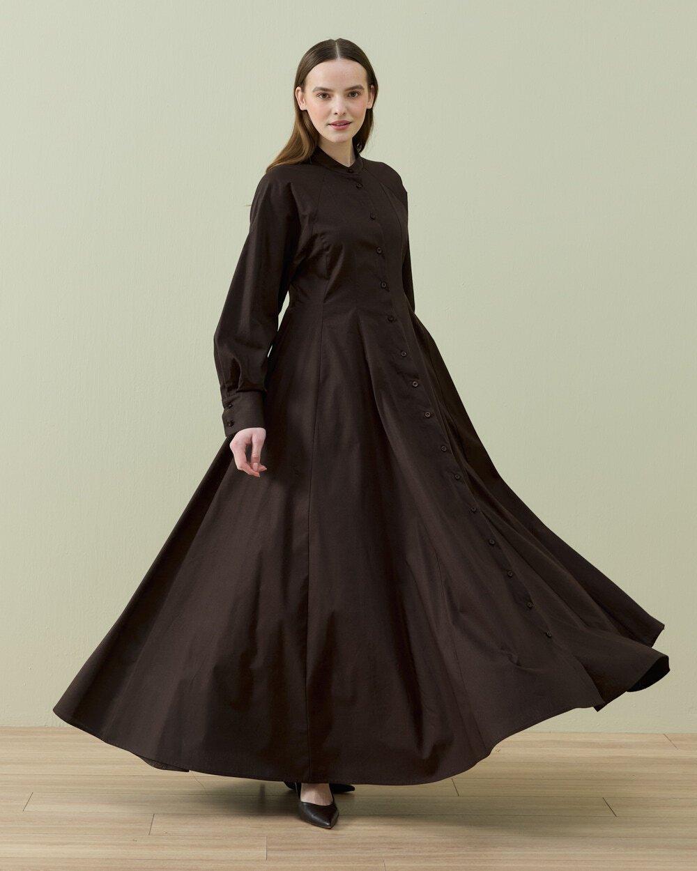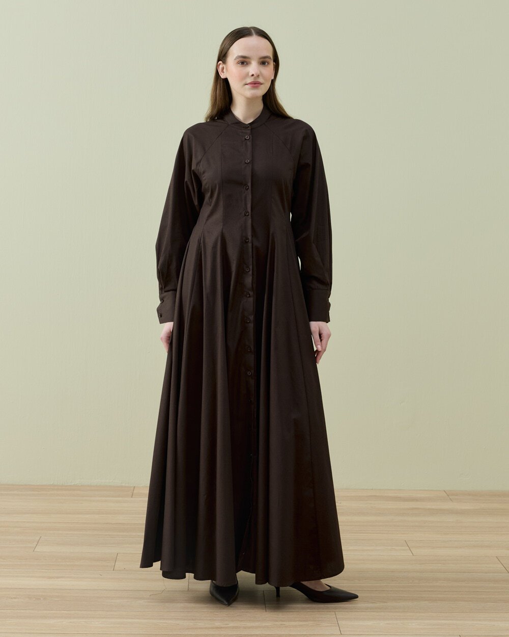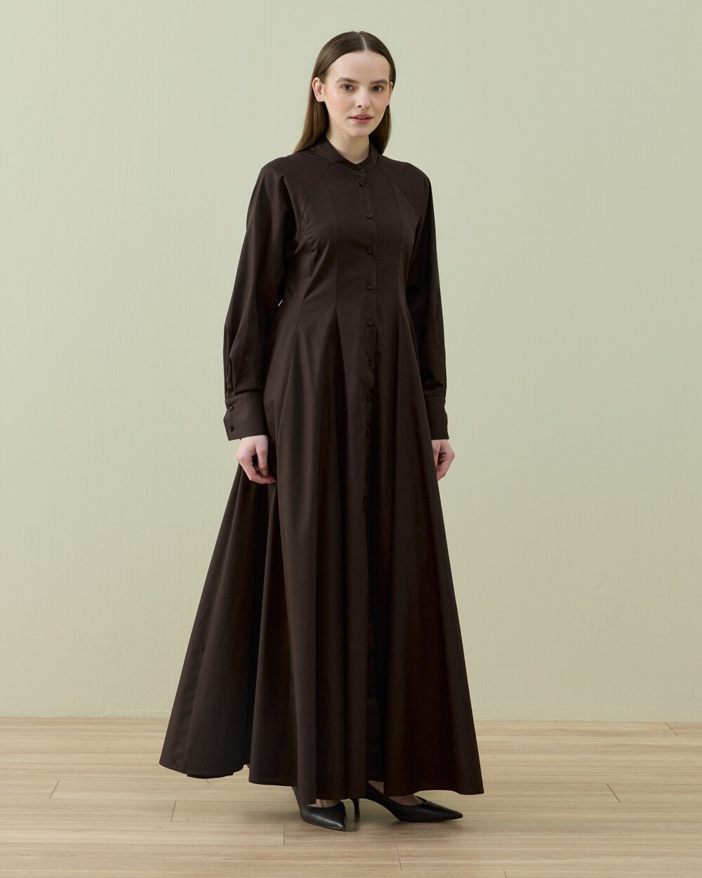 Rahat kalıbı ve modern tasarımıyla öne çıkan bu uzun elbise, akıcı kumaş yapısı sayesinde gün boyu konfor sunar. Bel kısmındaki ayarlanabilir bağlama detayı sayesinde vücuda göre şekil alarak zarif bir görünüm oluşturur. Uzun ve dökümlü formu ile hem günlük kullanımda hem de şık kombinlerde rahatlıkla tercih edilebilir.