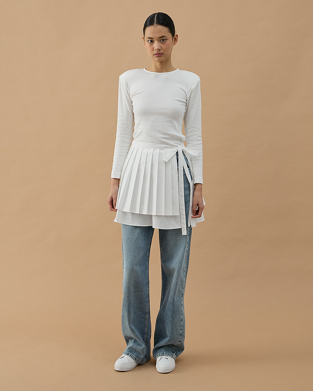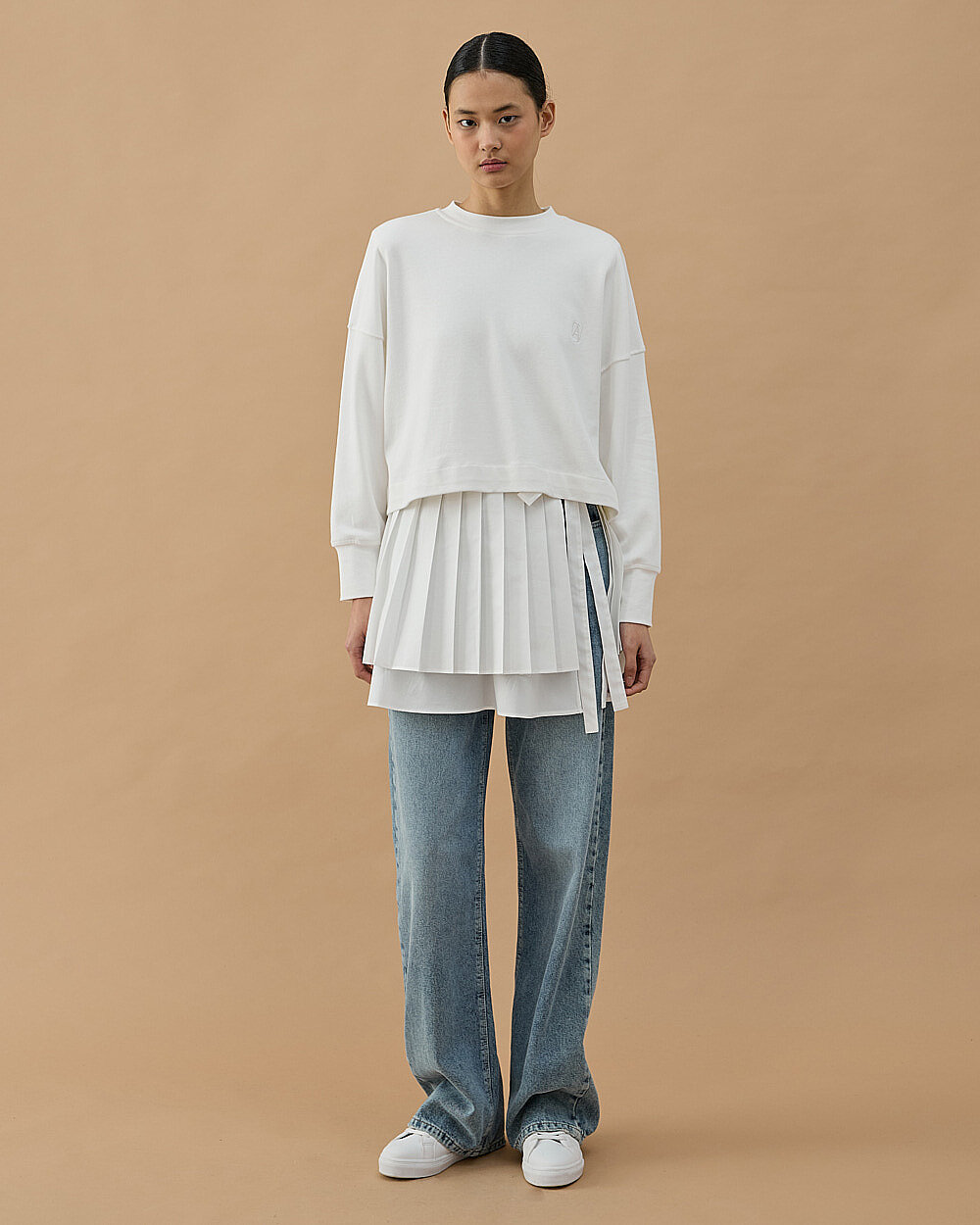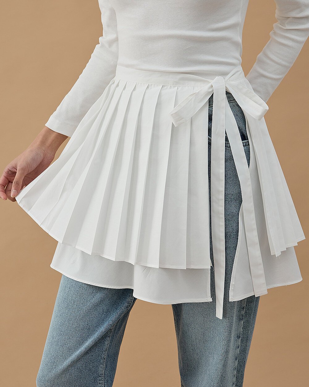 Poplin İki Kat Pilise İçlik Etek Ekru