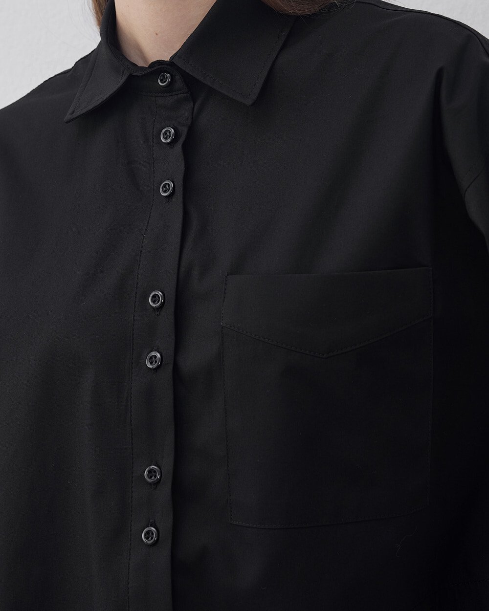 Önden cep detaylarıyla hem şık hem de kullanışlı olan bu gömlek, işlevselliği ve estetiği bir araya getiriyor. 48 cm ön uzunluğu ve 52 cm arka uzunluğuyla modern bir crop kesime sahip olan bu model, yüksek bel pantolonlarla mükemmel bir uyum yakalarken, casual ya da şık kombinler için ideal bir tamamlayıcıdır. Geniş kesimi sayesinde vücuda oturmaz ve konforlu bir kullanım sunar.