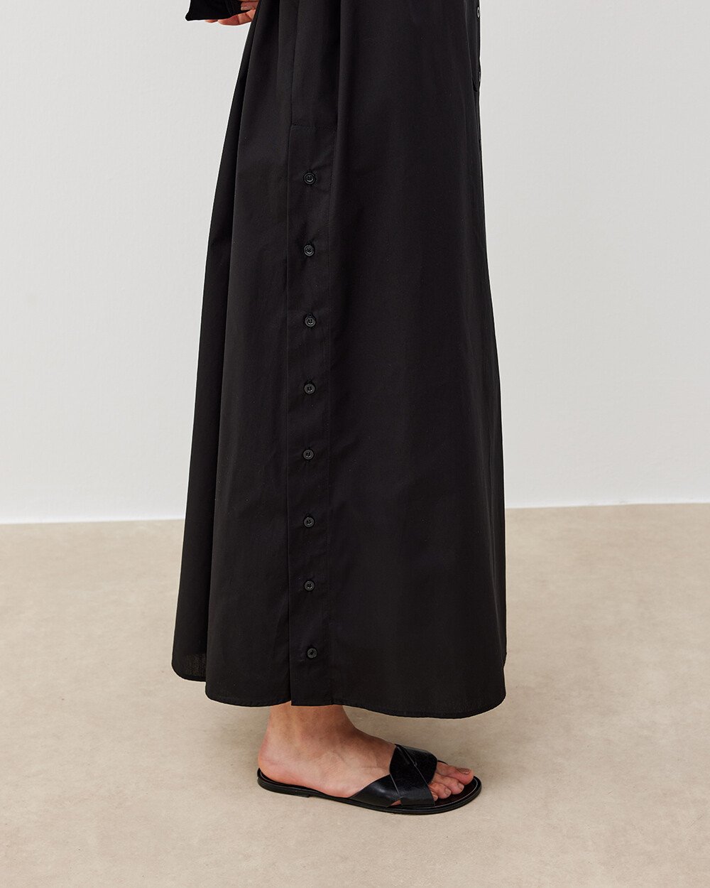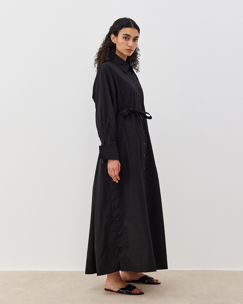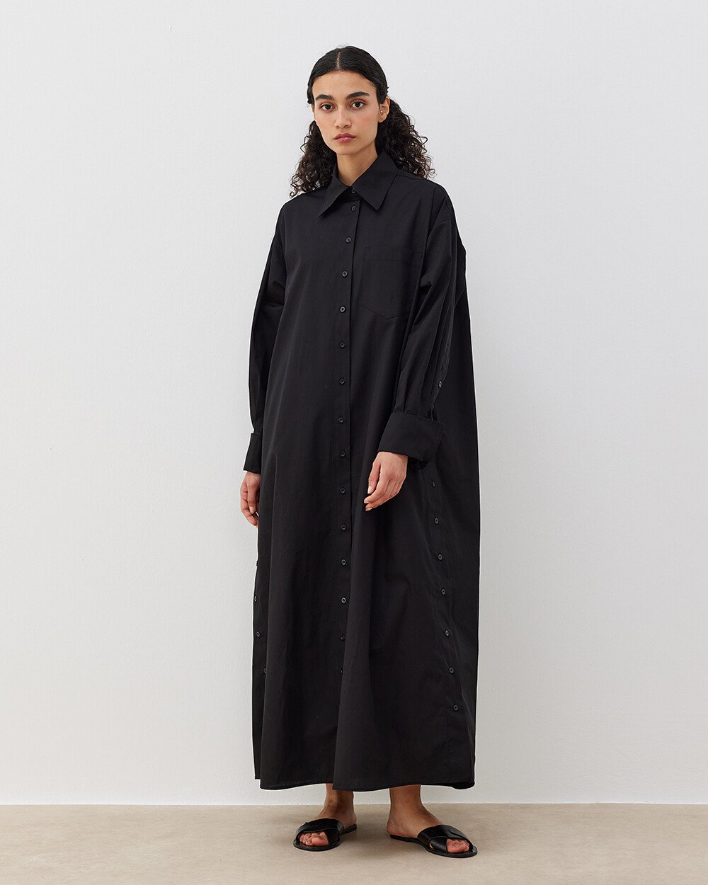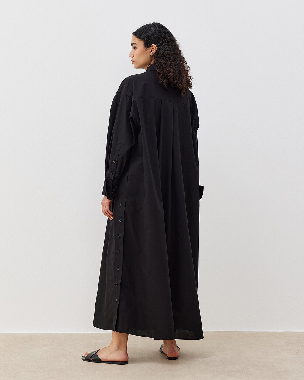 Poplin Oversize Yırtmaçlı Uzun Düğmeli Gömlek Elbise Siyah