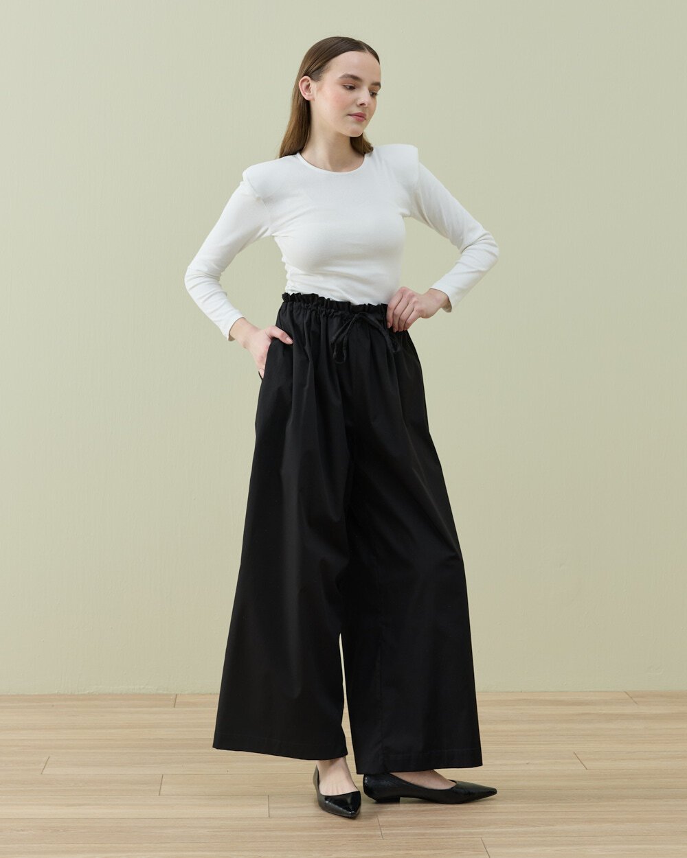 Poplin Wide Leg Bol Pantolon Siyah