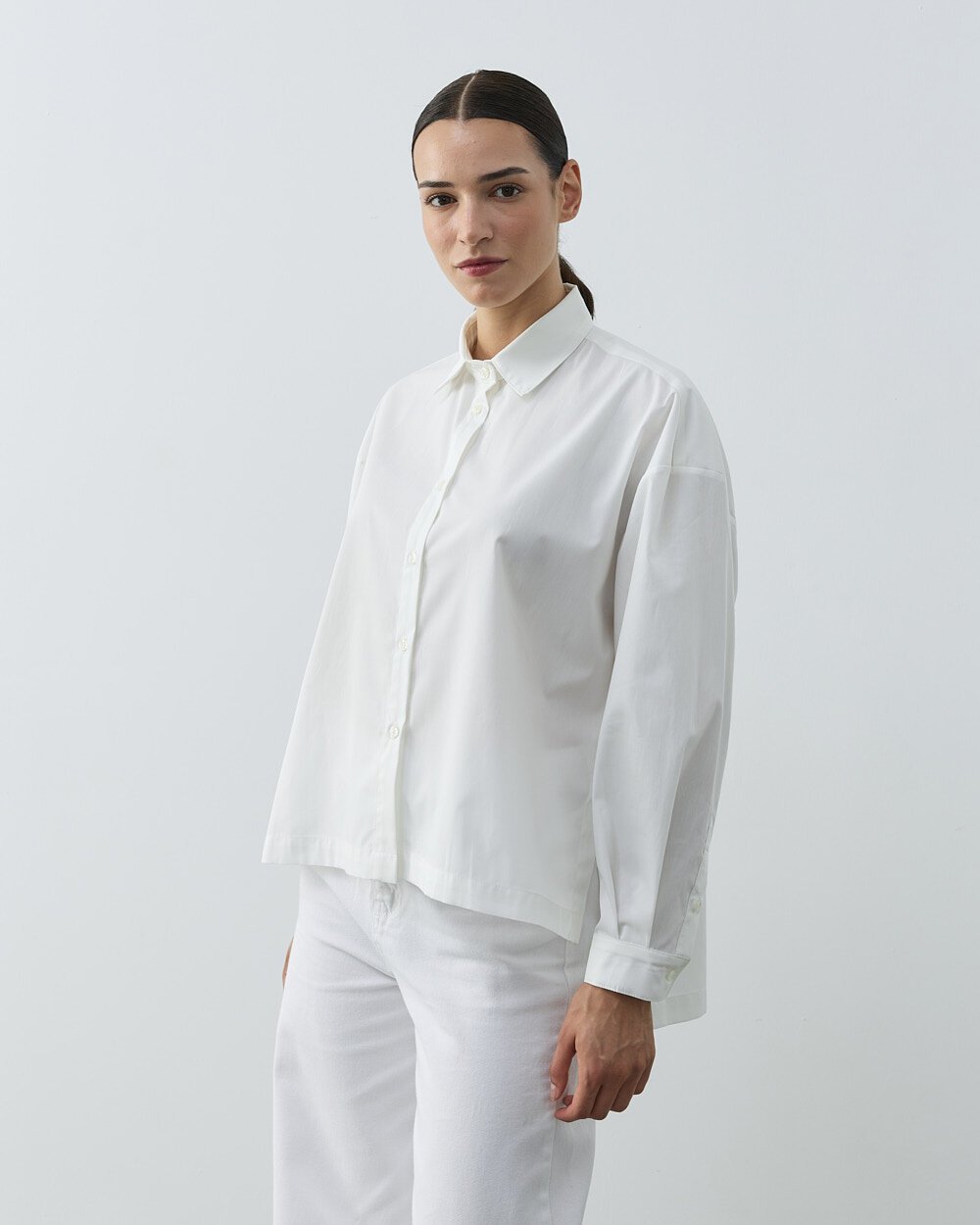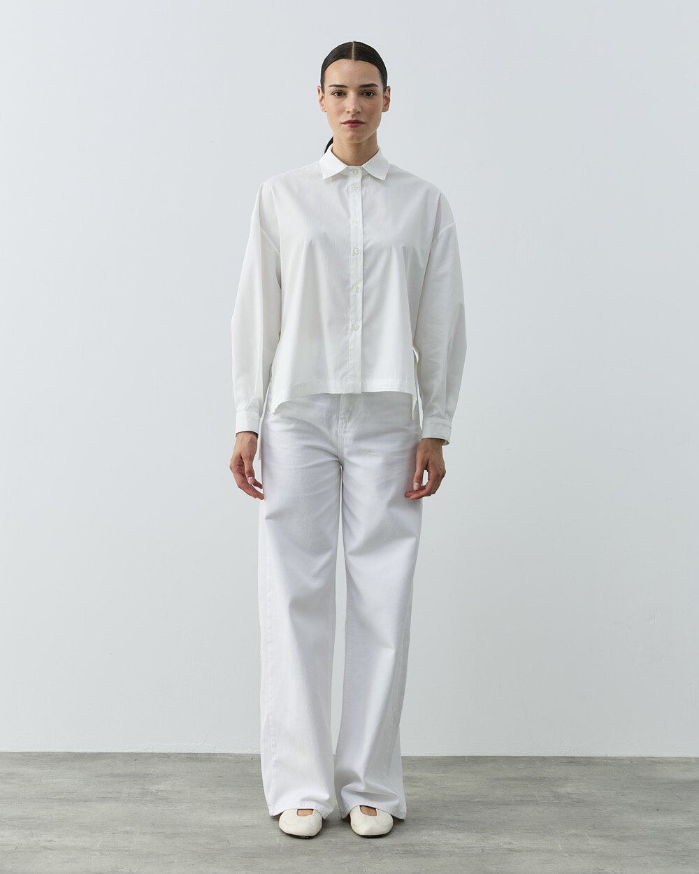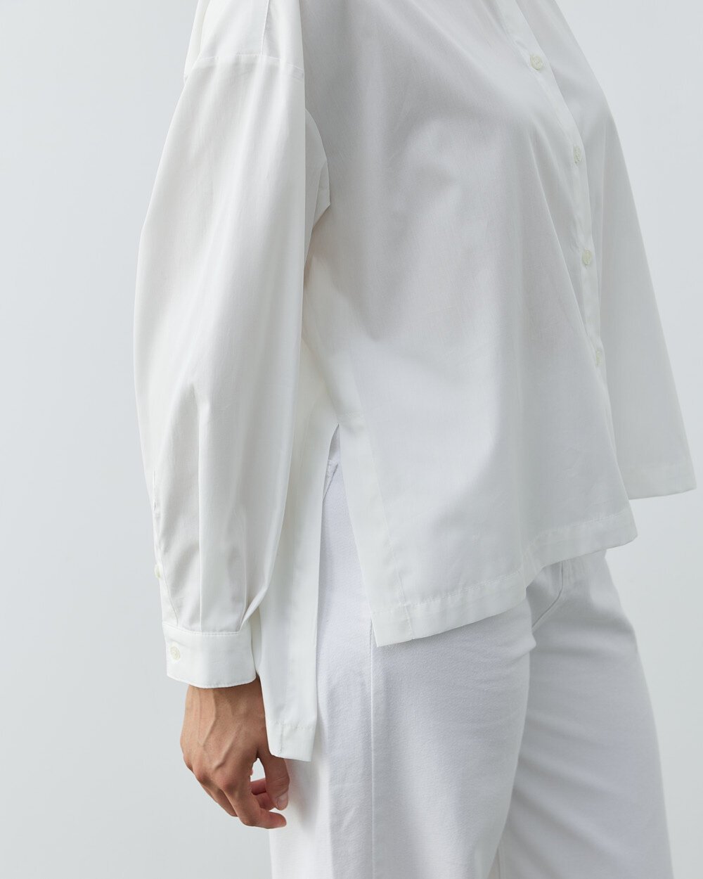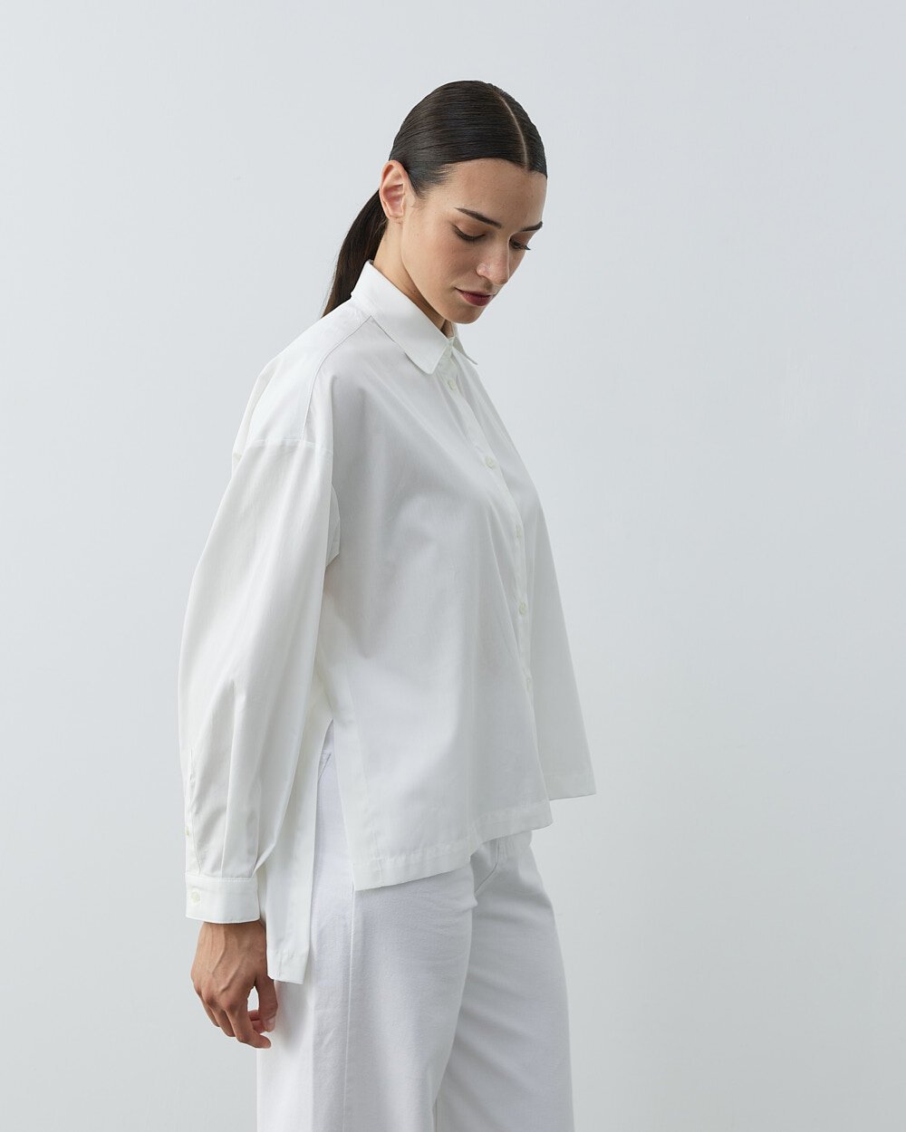 Poplin Yırtmaçlı Kısa Gömlek Ekru