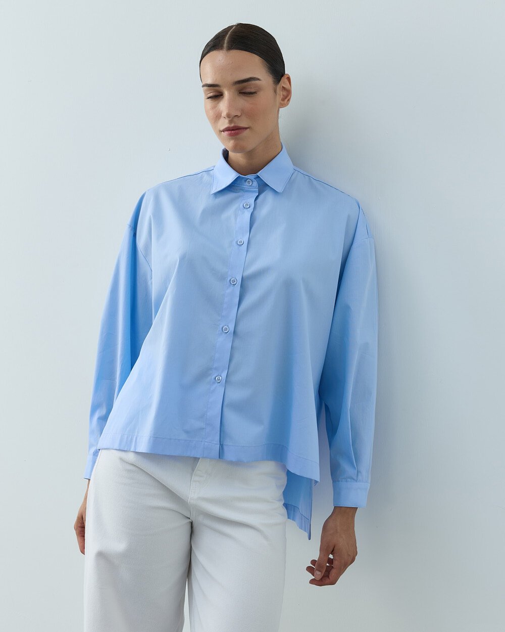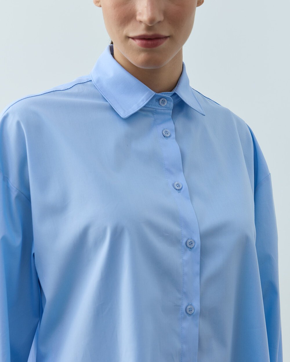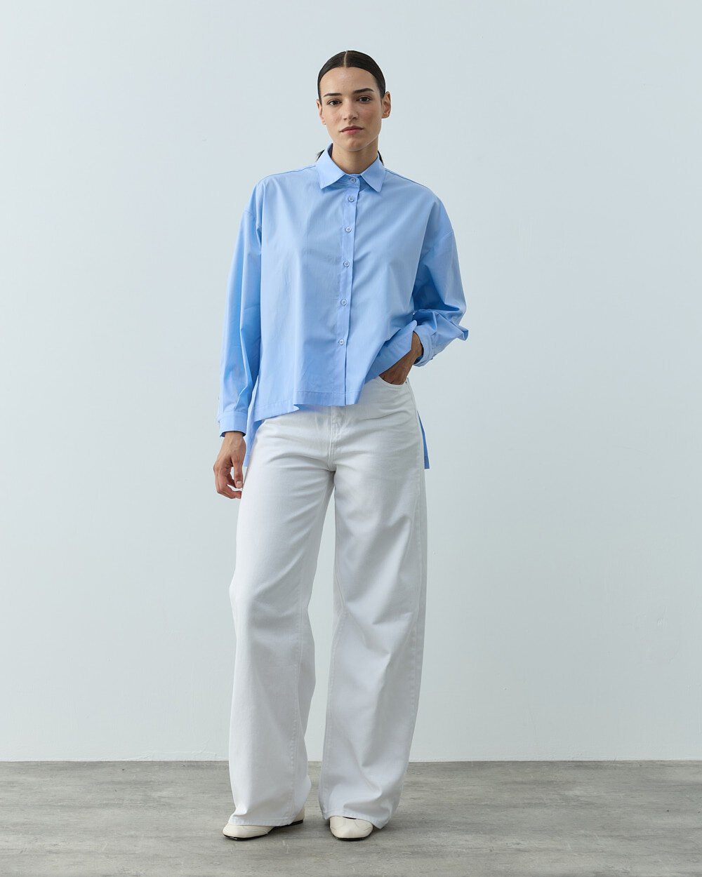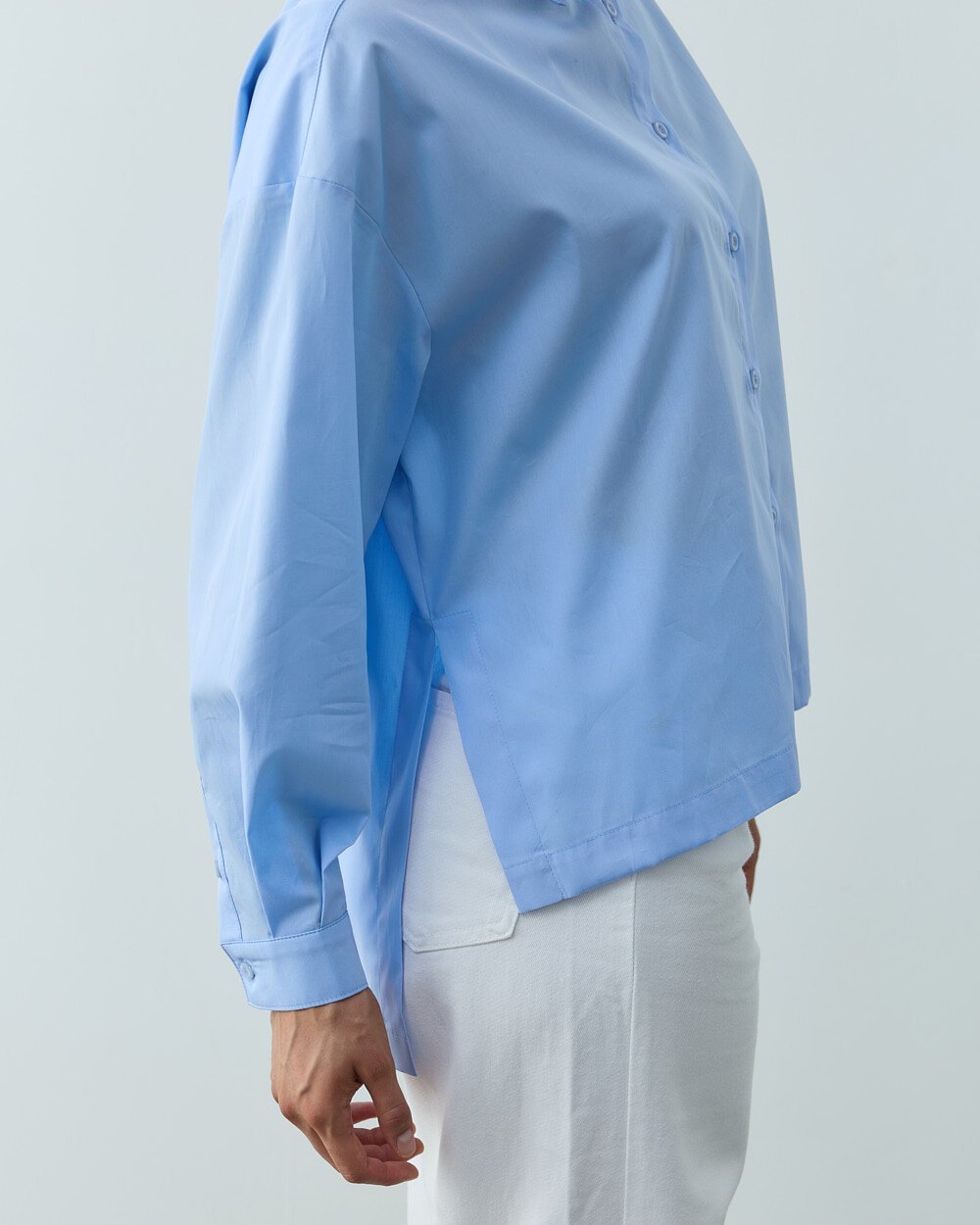 Poplin Yırtmaçlı Kısa Gömlek Mavi