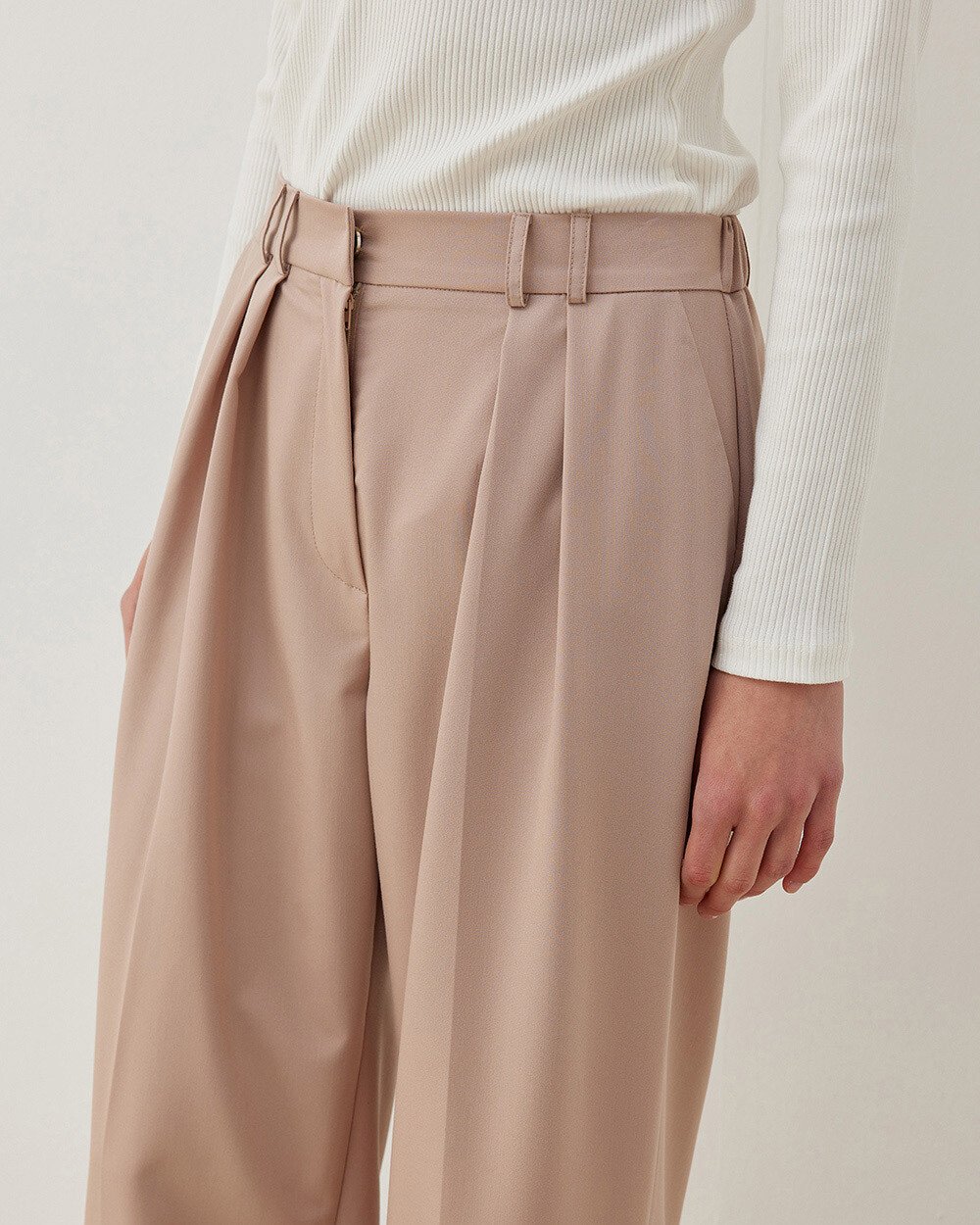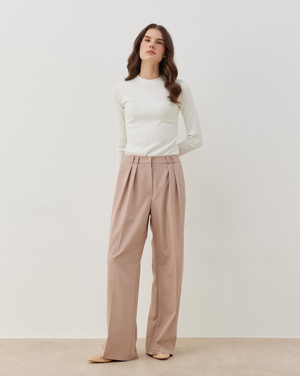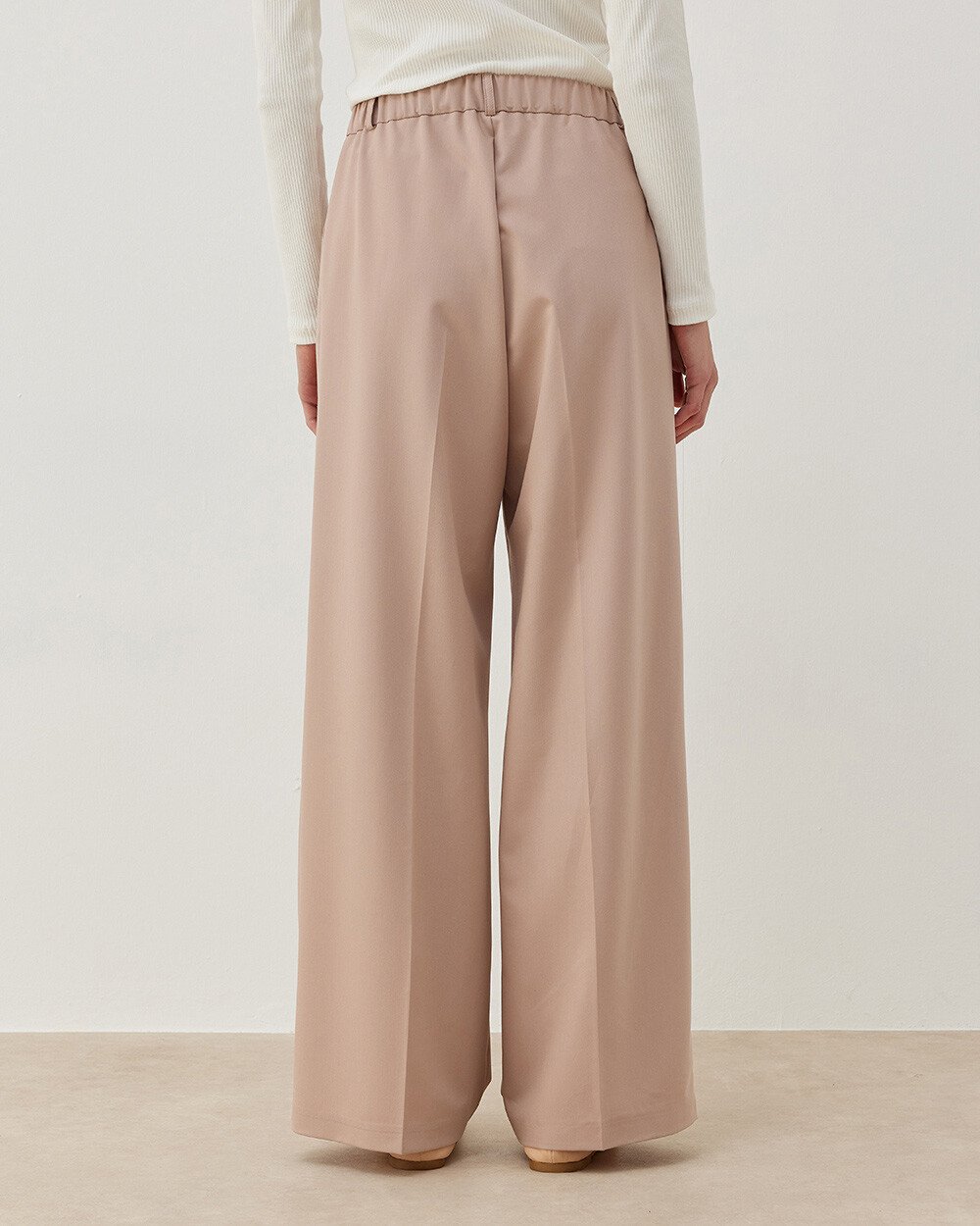 Premium Çift Pileli Palazzo Pantolon - Pudra