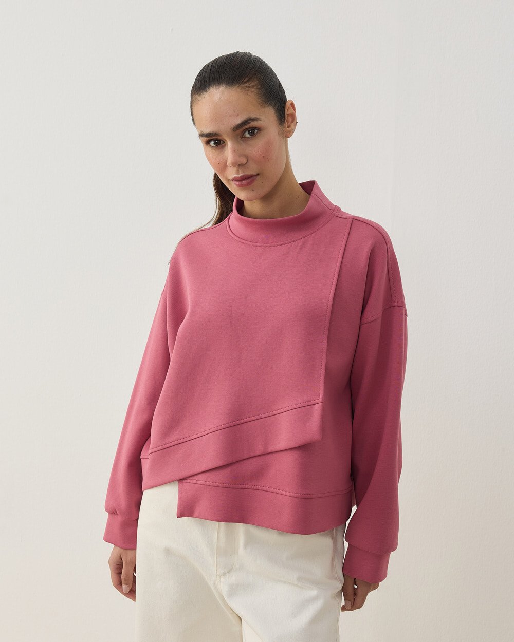 Premium Doubleface Kısa Amorf Formlu Sweat Pembe