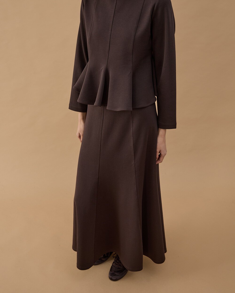 Detay: Volanlı inen, rahat kloş kalıp.