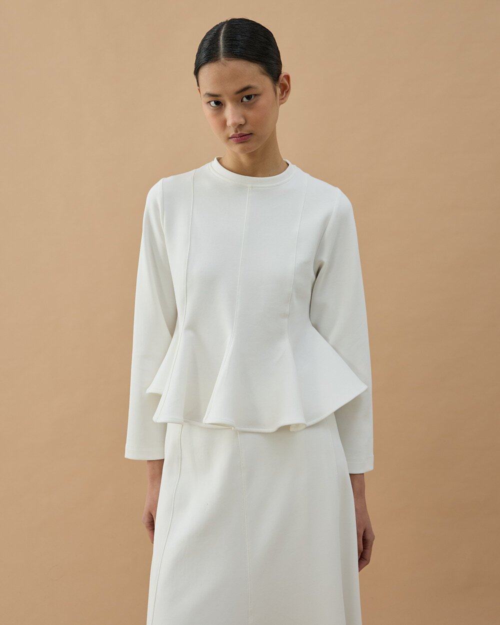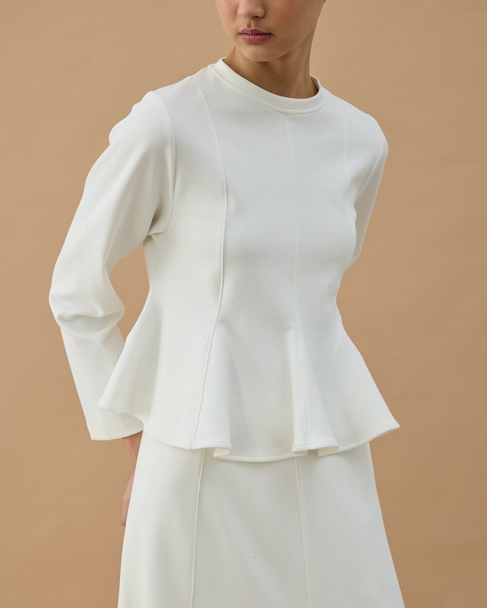Premium Doubleface Kuplu Volanlı Bluz Ekru