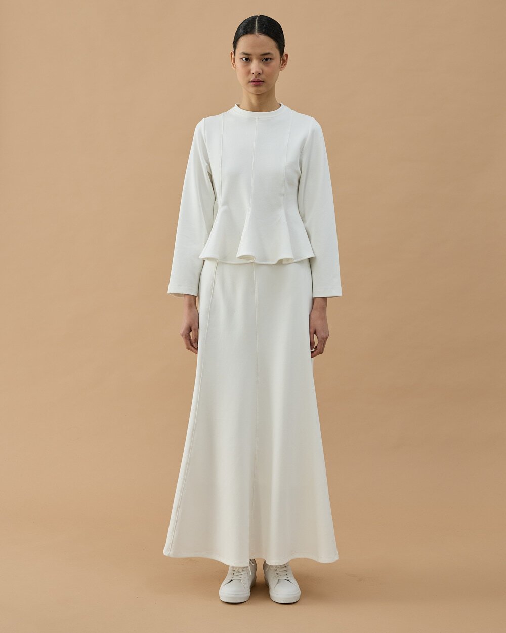 Uzun Kollu Elbise Astarı Beyaz