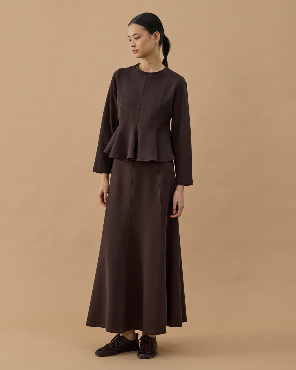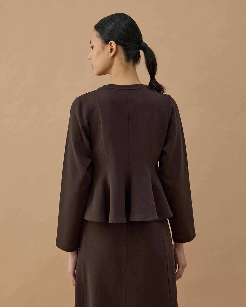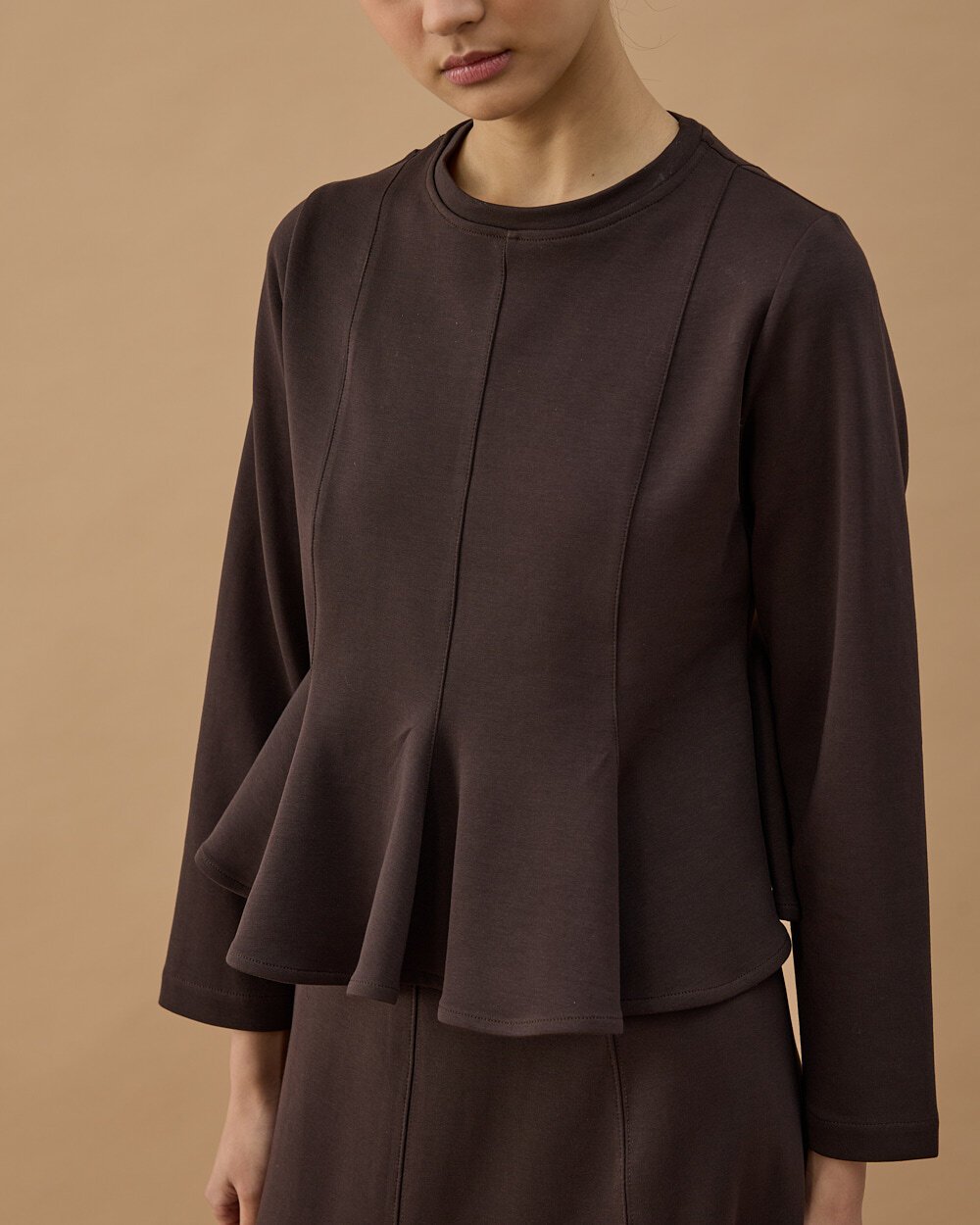 Premium Doubleface Kuplu Volanlı Bluz Kahve