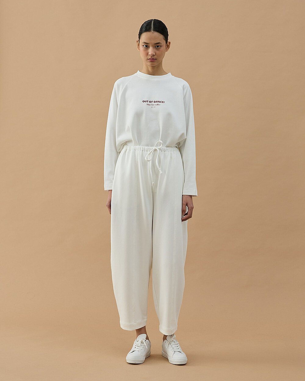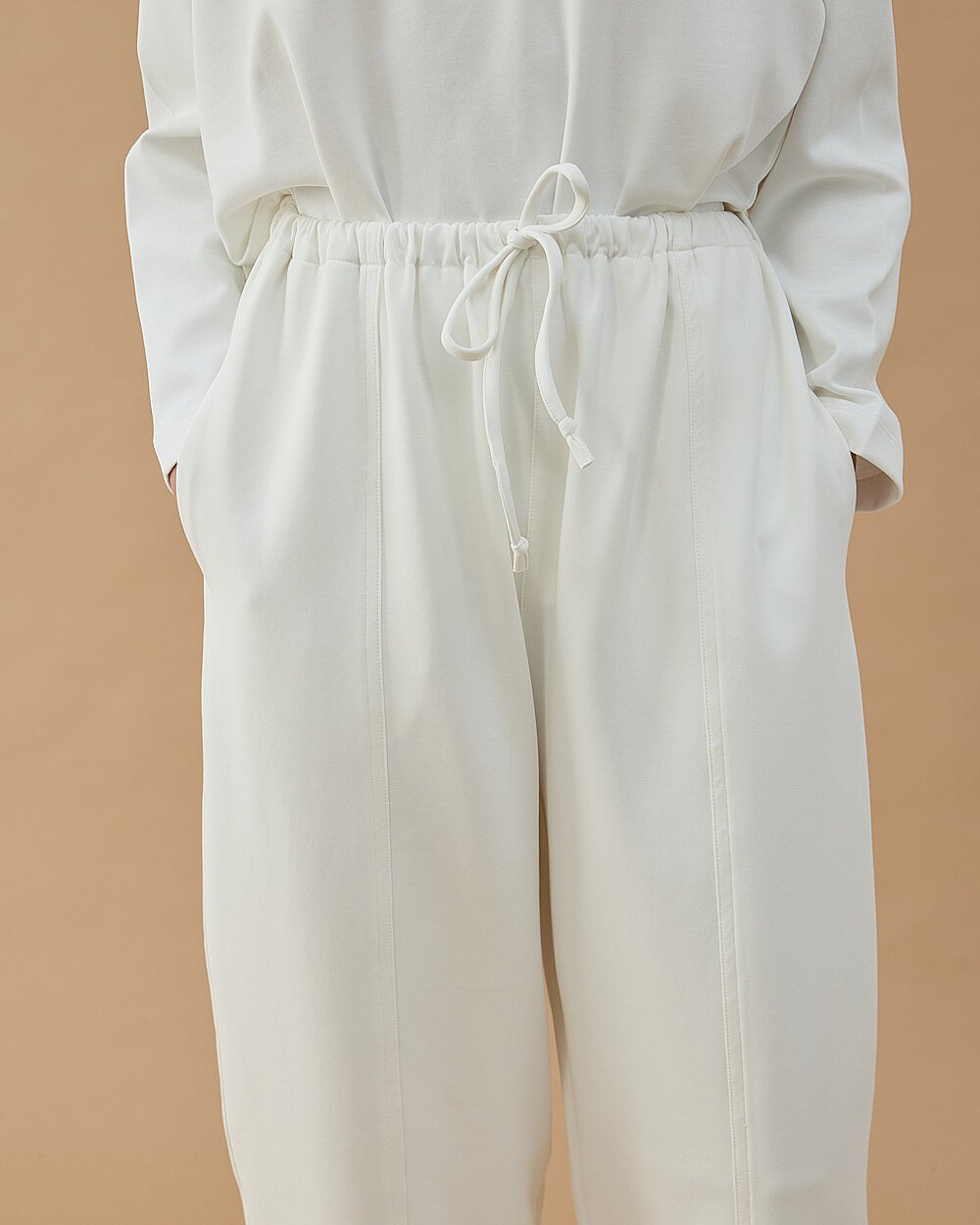 Premium Doubleface Loose Fit Önü Dikişli Pantolon Ekru