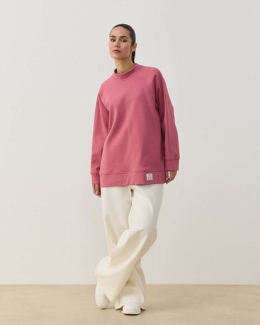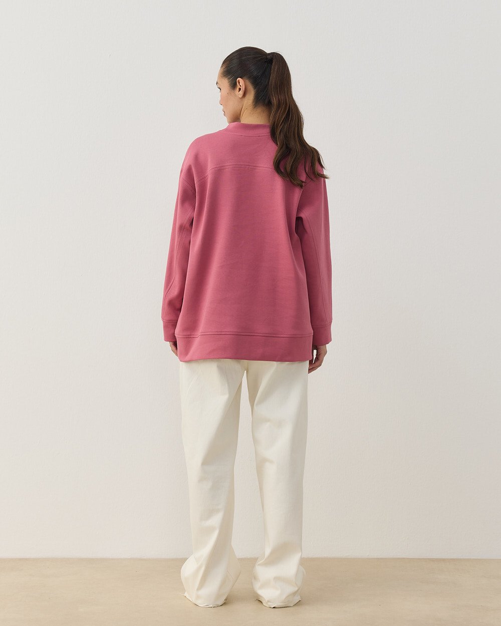 Premium Doubleface Reglan Kollu Çift Dikiş Detaylı Sweatshirt Pembe