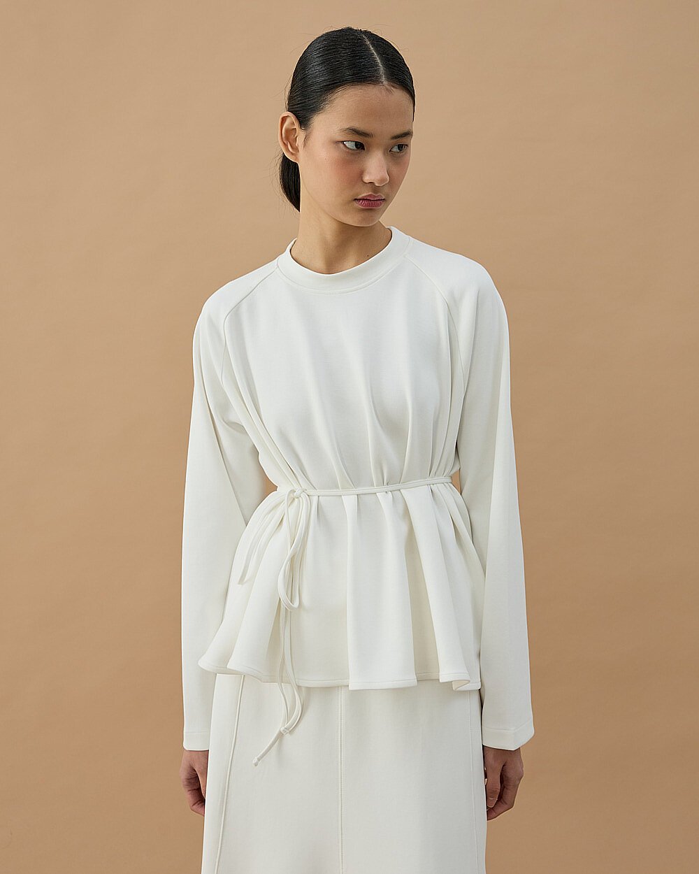 Premium Doubleface Volanlı Kısa Bluz Ekru