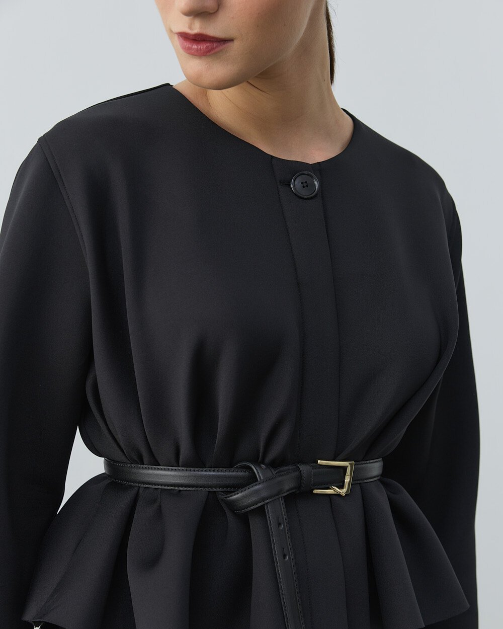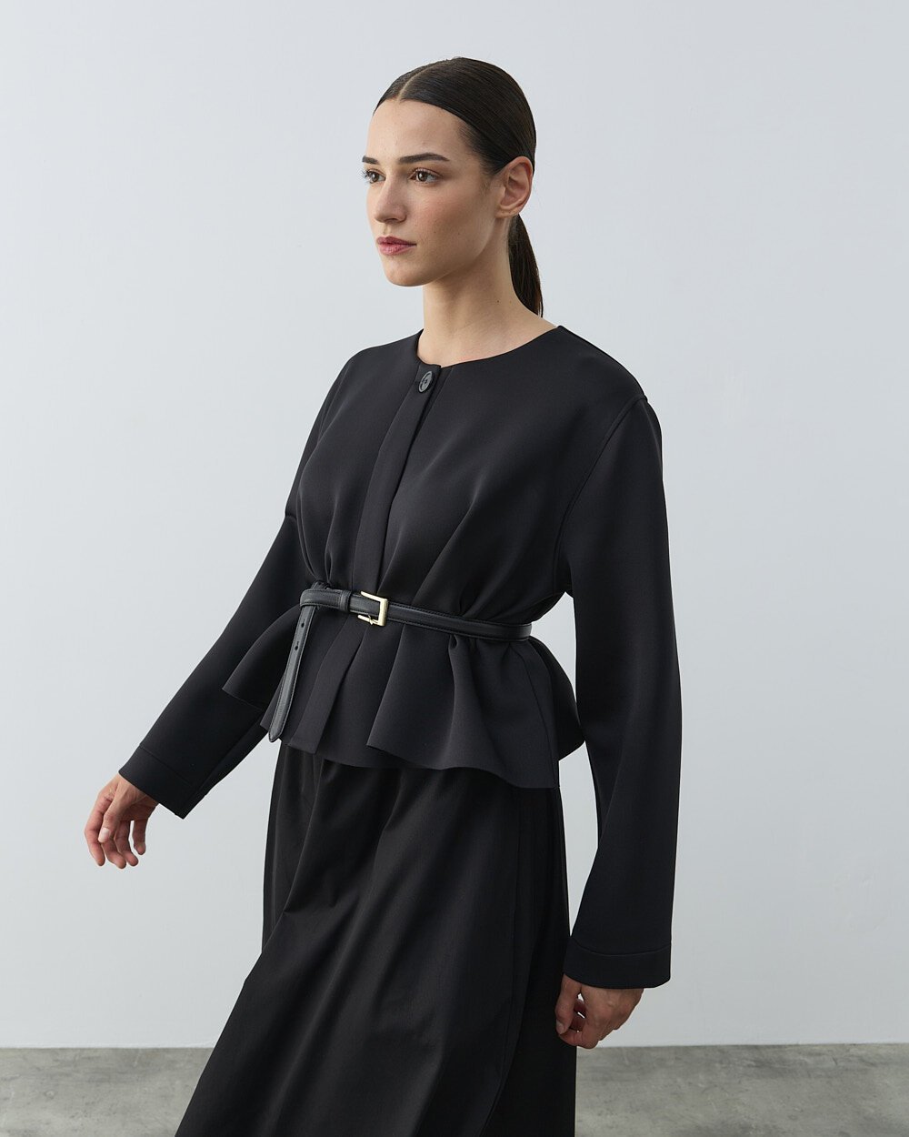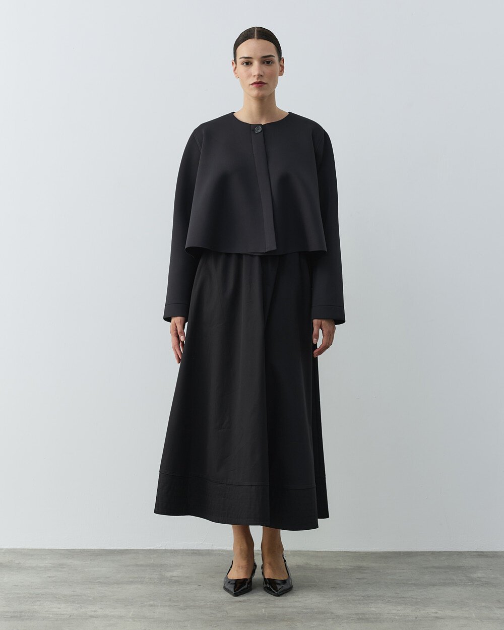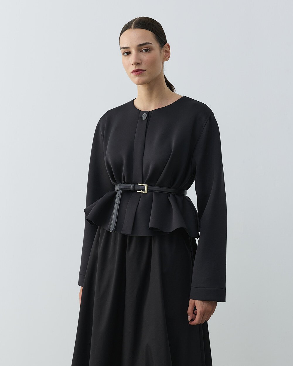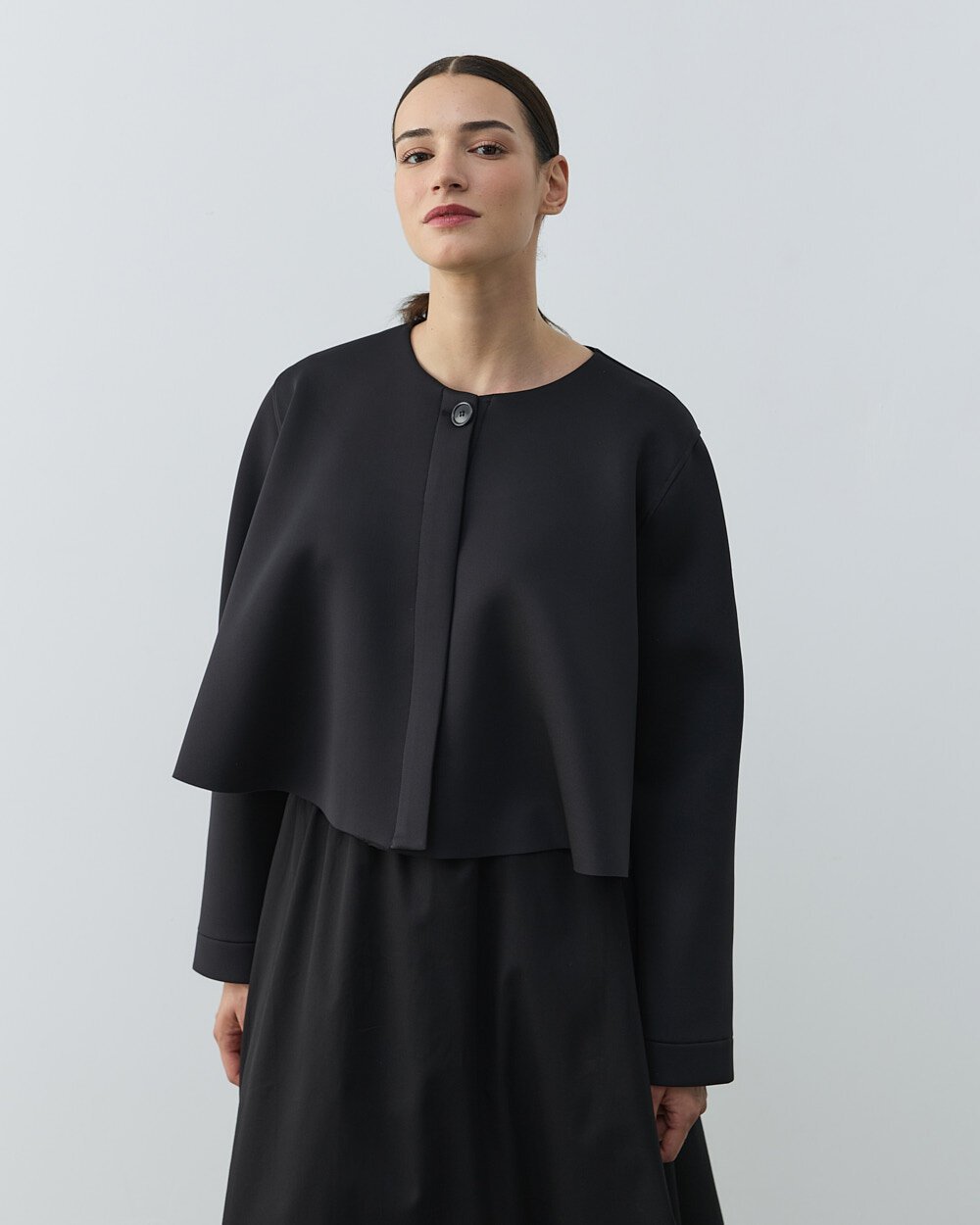 Detay: Geniş kesim bol kalıptır.Puf dokulu kumaşı sayesinde hacimli ve modern bir görünüm sunar. Kısa crop formu, bele oturan volanlı kesimle dengelenerek feminen bir siluet oluşturur. Siyah rengi, sade ve ferah bir stil sunarken zamansız şıklığı ön plana çıkarır. Önü fermuarlı yapısı pratik kullanım sağlar ve spor-şık kombinlere uyum sağlar. Hafif yapısı sayesinde gün boyu konfor sunar. Elbise, etek veya yüksek bel pantolonlarla rahatlıkla kombinlenebilir. Günlük kullanımın yanı sıra özel davetlerde de şık bir tamamlayıcı olarak tercih edilebilir.