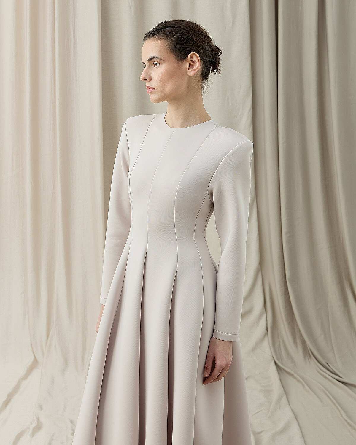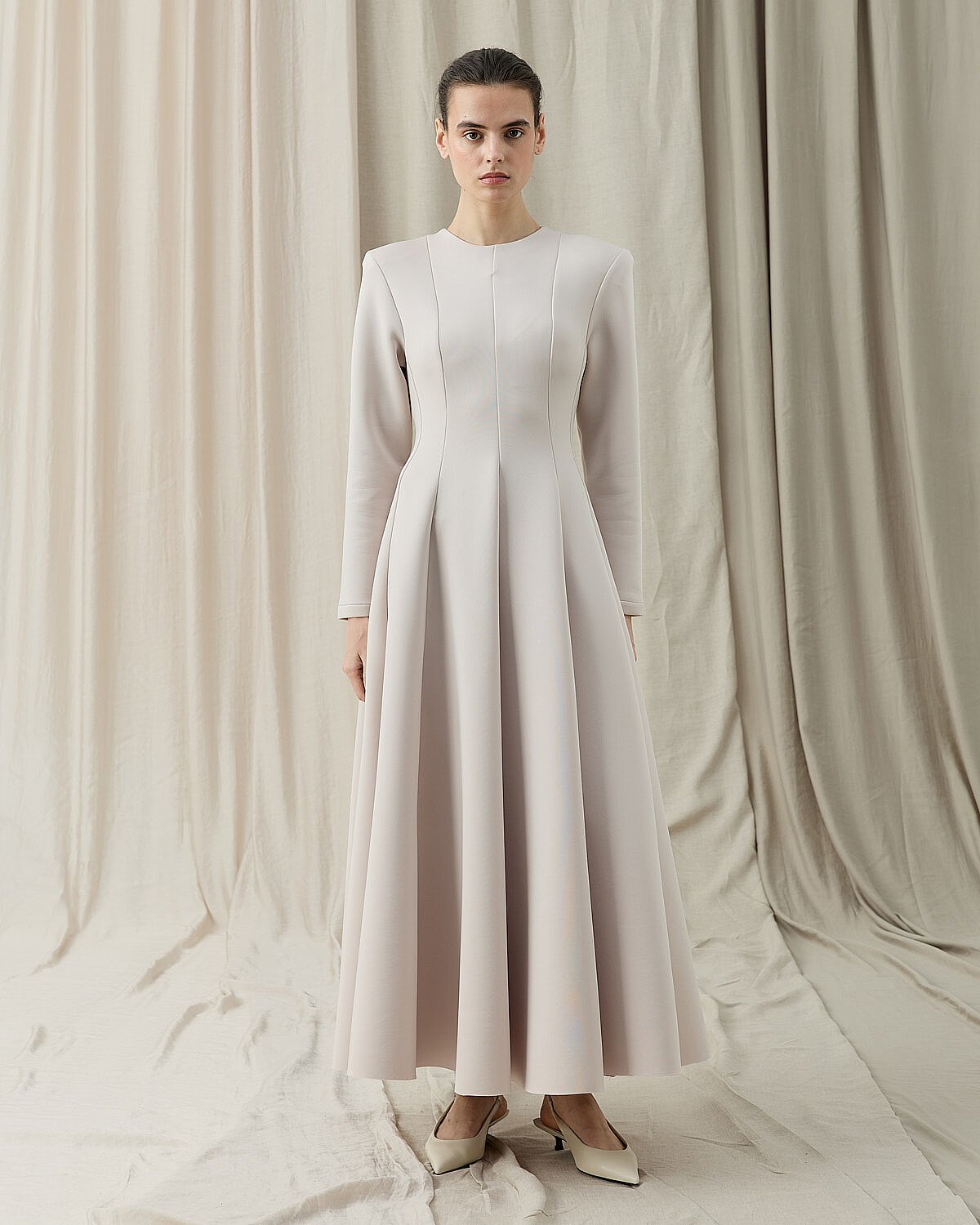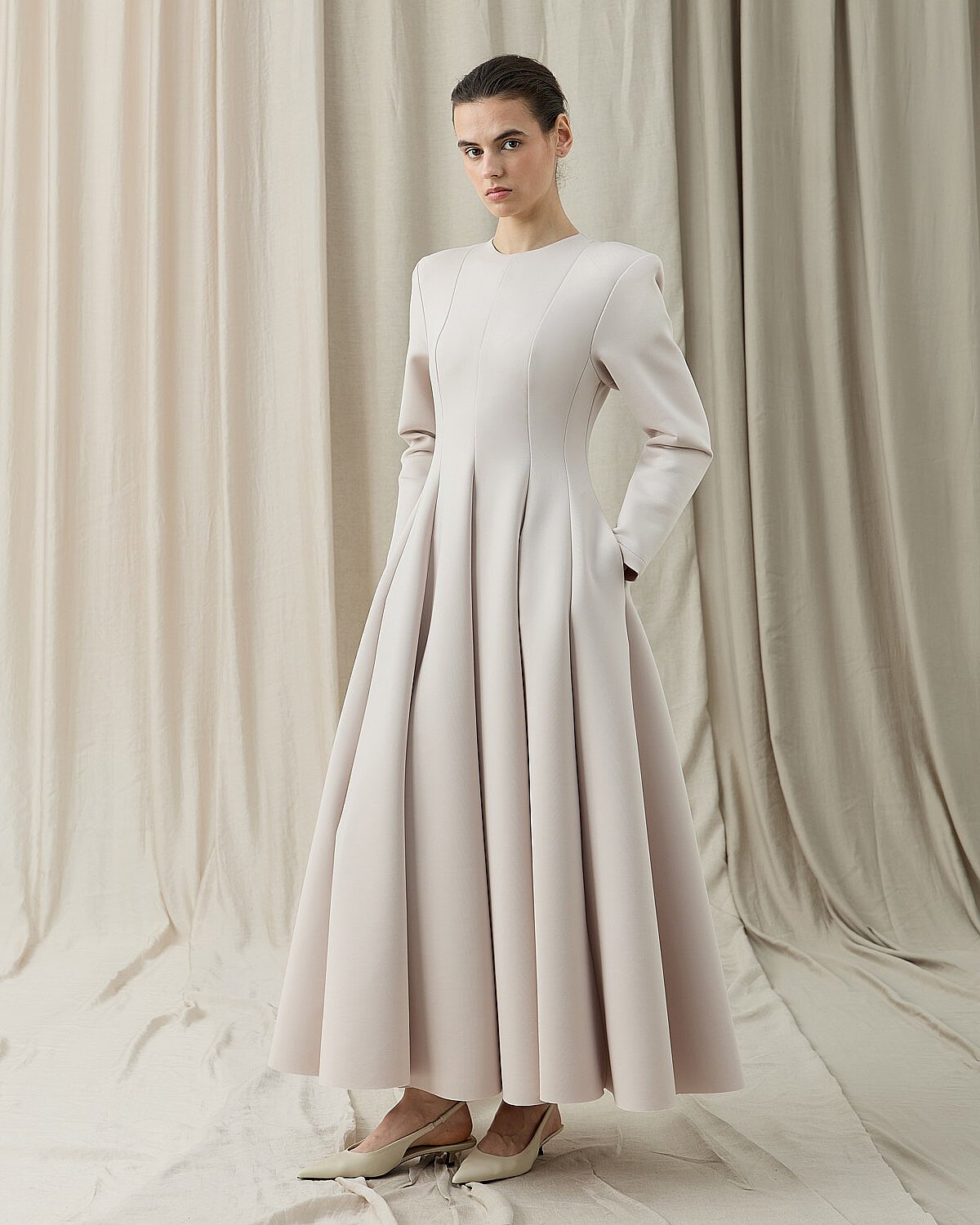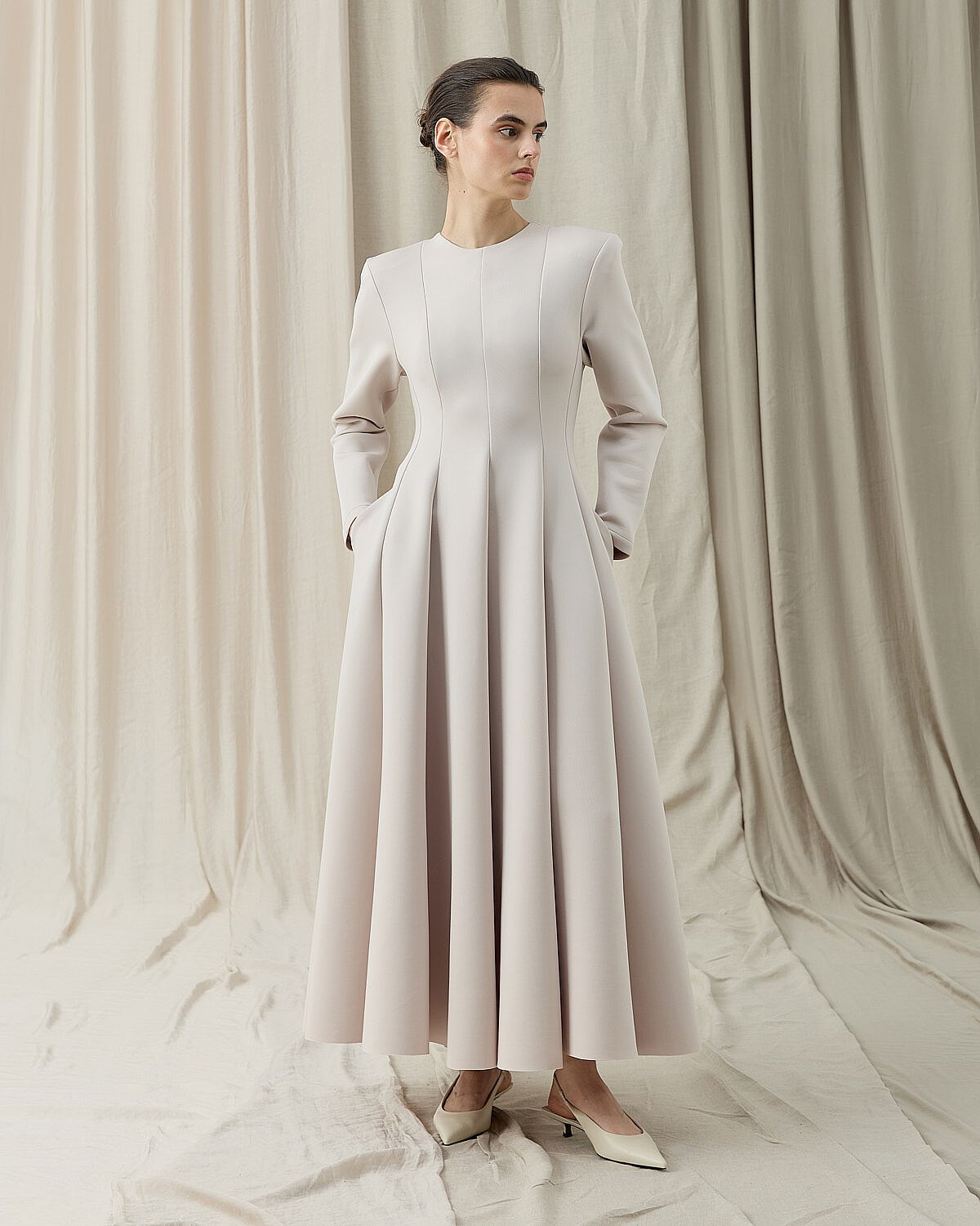 Oturan kalıptır.Zarif formu ve vücuda oturan kesimiyle öne çıkan Puf Parçalı Oturan Fit Elbise, siyahın zamansız şıklığını modern bir siluetle buluşturur. Üst bedende formu toparlayan yapısı, belden aşağı doğru akıcı ve pileli etek kesimiyle dengeli bir duruş sunar. Uzun kollu tasarımı, mevsim geçişlerinde ve serin günlerde konforlu bir kullanım sağlar. Yan cepleri, elbiseye hem fonksiyonellik hem de günlük şıklık katar. Minimal ve güçlü duruşuyla özel davetlerden günlük şık kombinlere kadar geniş bir kullanım alanı sunar. Topuklu ayakkabılarla klasik, düz ayakkabılarla ise modern bir stil elde edilebilir.