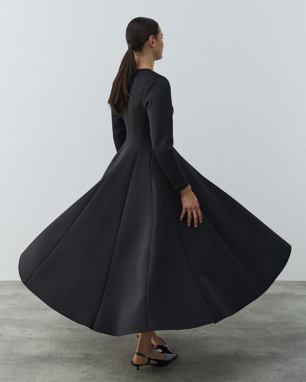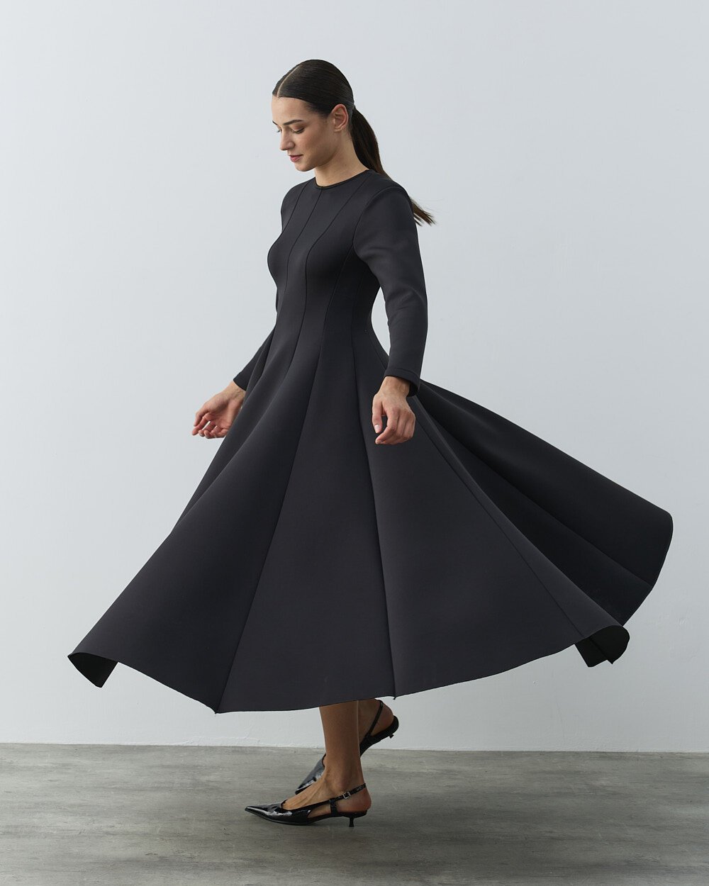 Detay: Oturan kalıptır.Zarif formu ve vücuda oturan kesimiyle öne çıkan Puf Parçalı Oturan Fit Elbise, siyahın zamansız şıklığını modern bir siluetle buluşturur. Üst bedende formu toparlayan yapısı, belden aşağı doğru akıcı ve pileli etek kesimiyle dengeli bir duruş sunar. Uzun kollu tasarımı, mevsim geçişlerinde ve serin günlerde konforlu bir kullanım sağlar. Yan cepleri, elbiseye hem fonksiyonellik hem de günlük şıklık katar. Minimal ve güçlü duruşuyla özel davetlerden günlük şık kombinlere kadar geniş bir kullanım alanı sunar. Topuklu ayakkabılarla klasik, düz ayakkabılarla ise modern bir stil elde edilebilir.