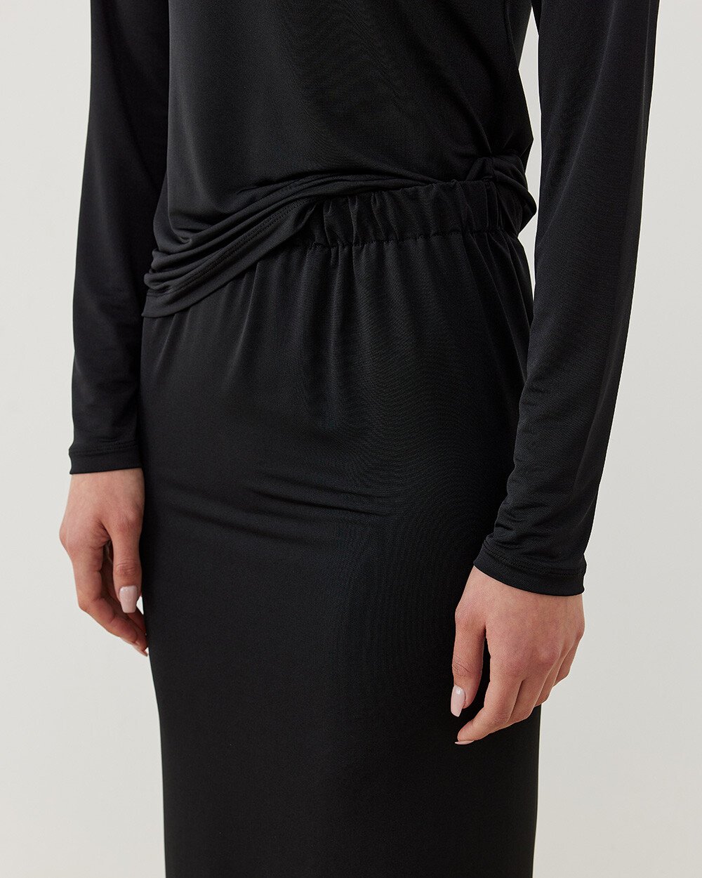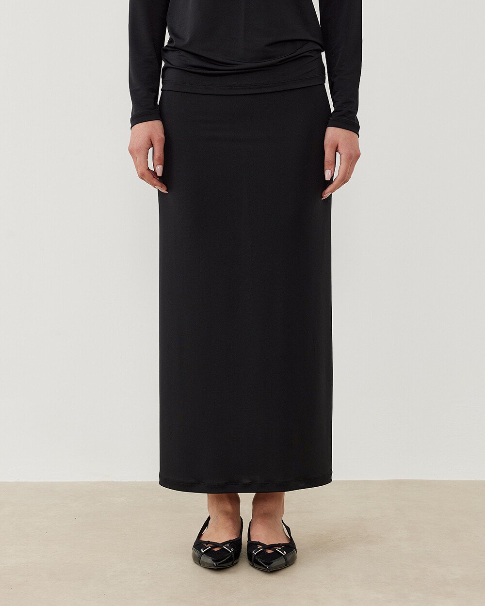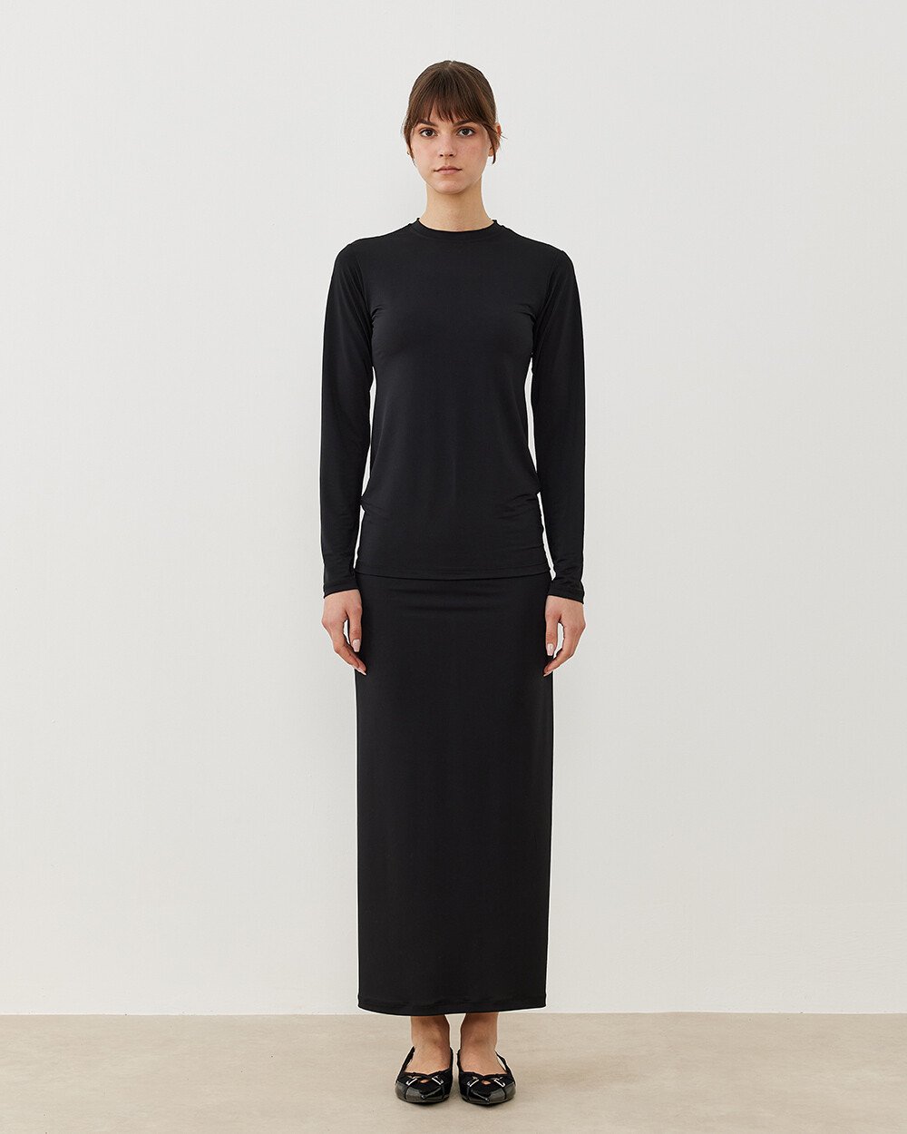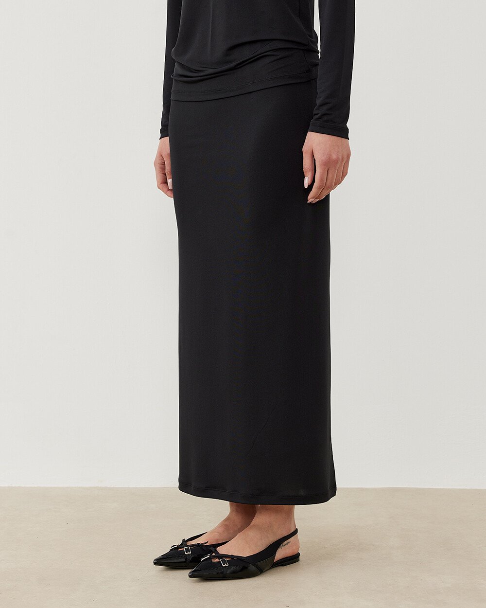 Sandy düz dar uzun kalem etek, zarif siyah rengi ve klasik kalem formu ile her gardırobun vazgeçilmezi olacak. Düz kalem formu sayesinde vücut hatlarınızı zarif bir şekilde vurgularken, uzun yapısı şıklığınızı artırır. Ofisten özel davetlere kadar her ortamda şıklığınızı tamamlar.