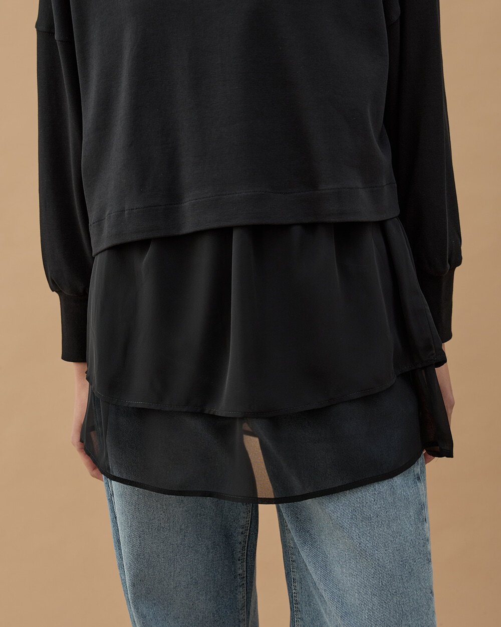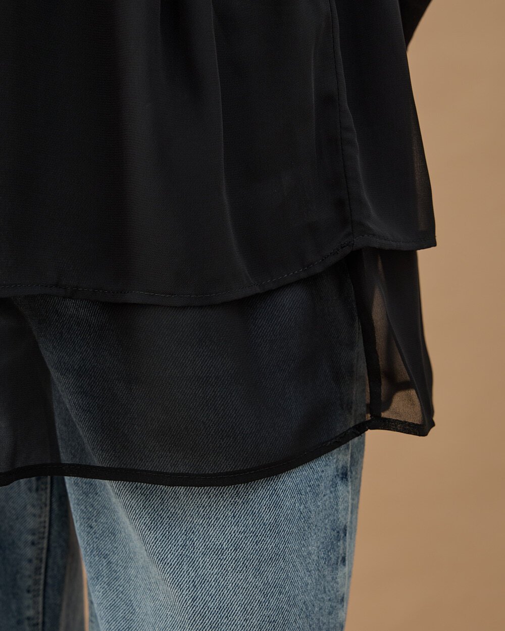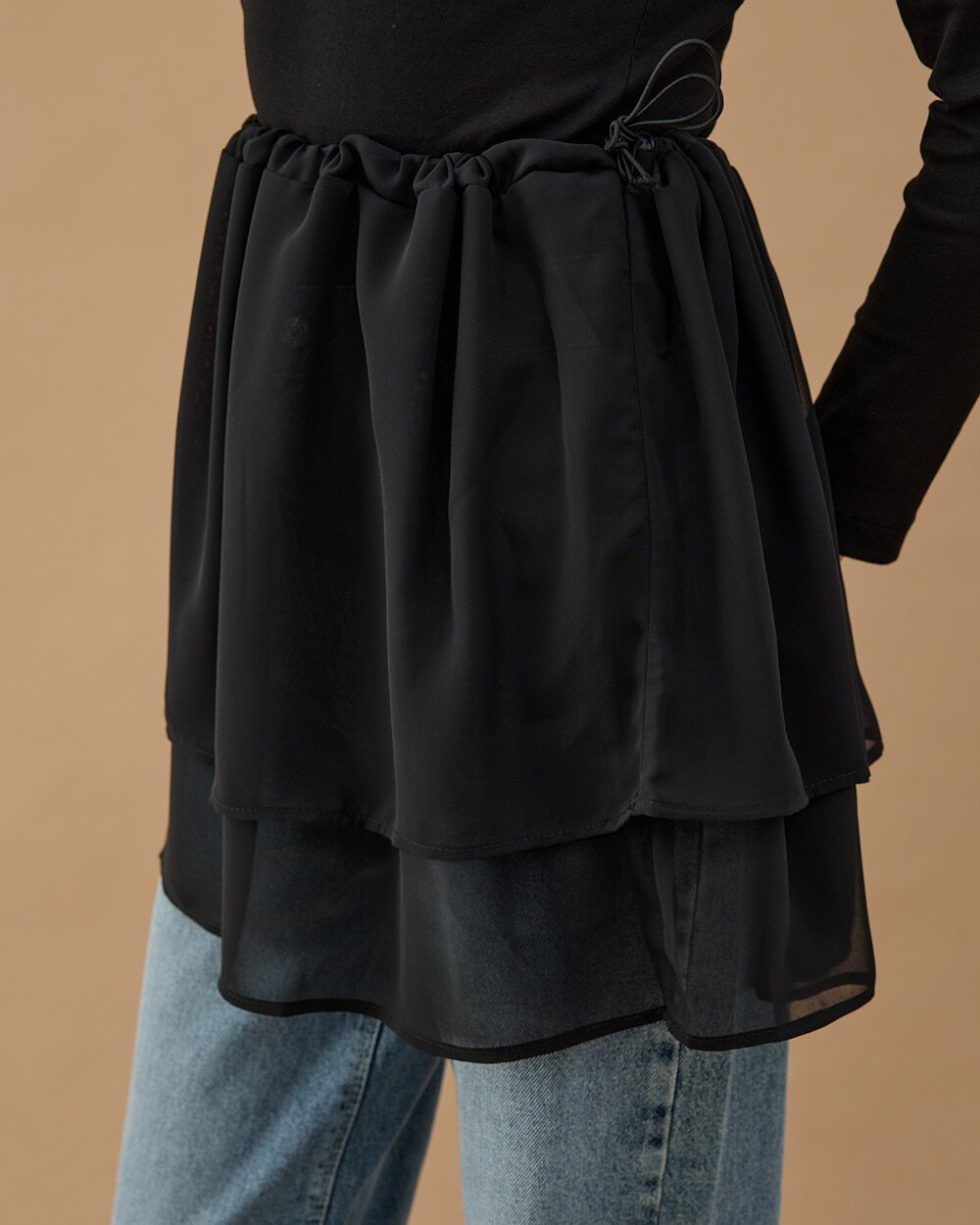 Şifon Fonksiyonel Katlı İçlik Etek - Siyah