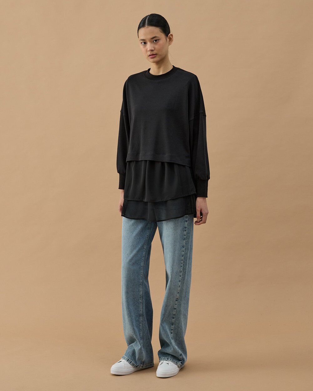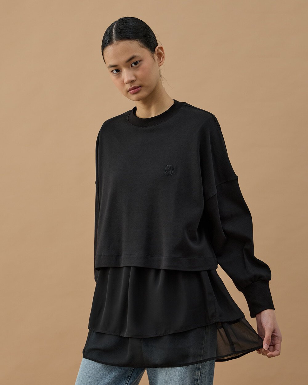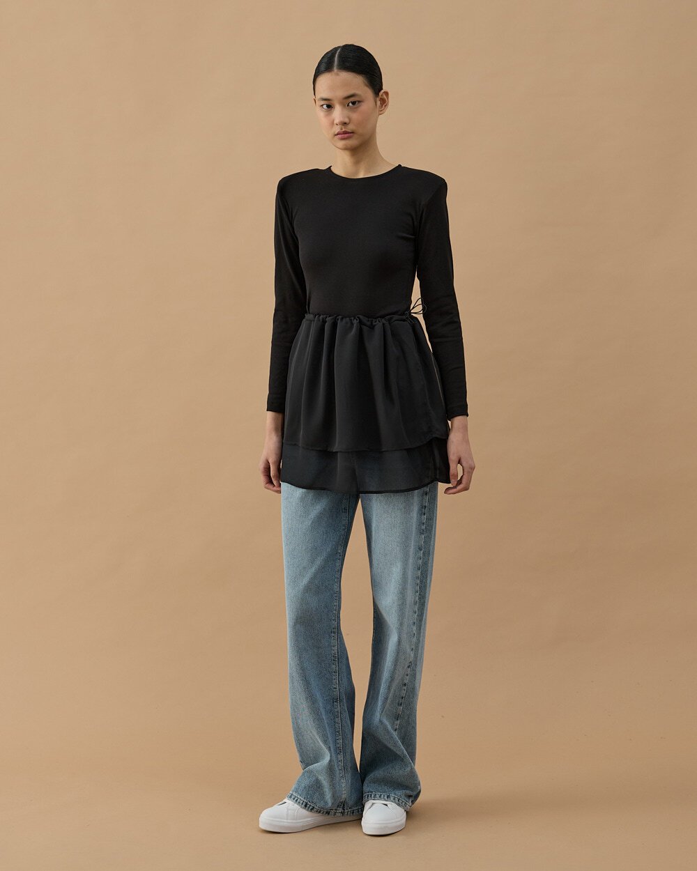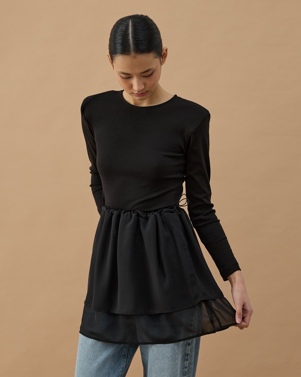 Şifon Fonksiyonel Katlı İçlik Etek - Siyah