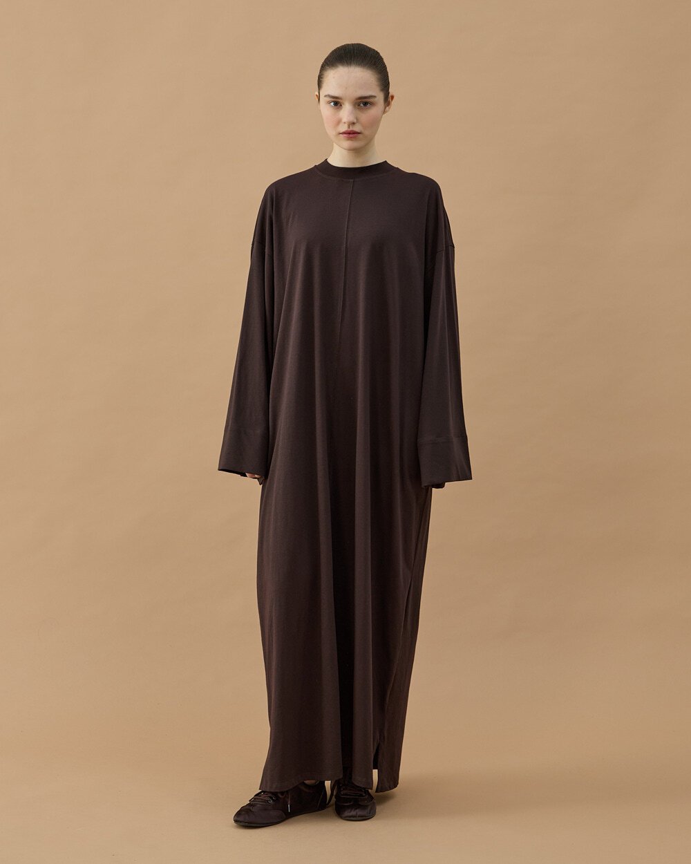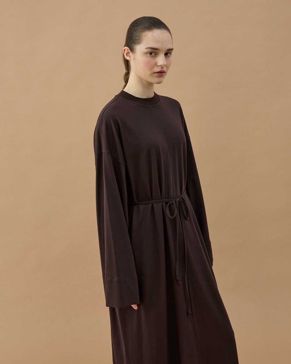 Minimal ve modern tasarımıyla öne çıkan bu elbise, rahat kalıbı ve akıcı kumaş yapısıyla gün boyu konfor sağlar. Bel kısmındaki ayarlanabilir bağlama detayı sayesinde vücuda göre şekil alarak zarif bir siluet oluşturur. Uzun formu sayesinde hem günlük kullanımda hem de şık kombinlerde rahatlıkla tercih edilebilir.