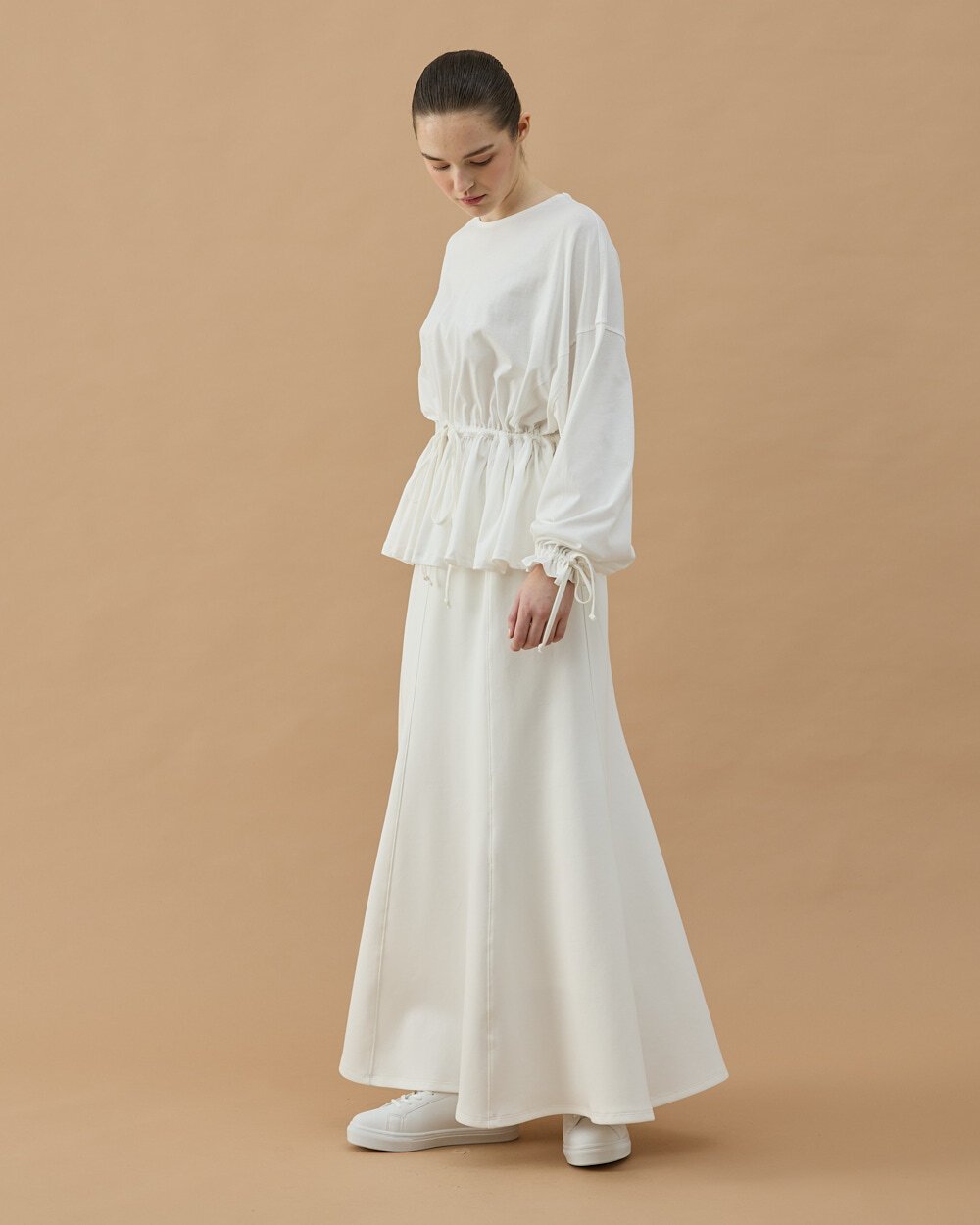 Rahat kalıbı ve modern tasarımıyla öne çıkan bu bluz, bel kısmındaki büzgü detayı sayesinde feminen ve hareketli bir görünüm sunar. Ayarlanabilir bağlama detayı vücuda göre form verilmesini sağlarken, uzun kol ve rahat kesim yapısı gün boyu konforlu kullanım sunar. Günlük stilinize modern bir dokunuş katacak bu model, etek ve pantolonlarla kolayca kombinlenebilir.