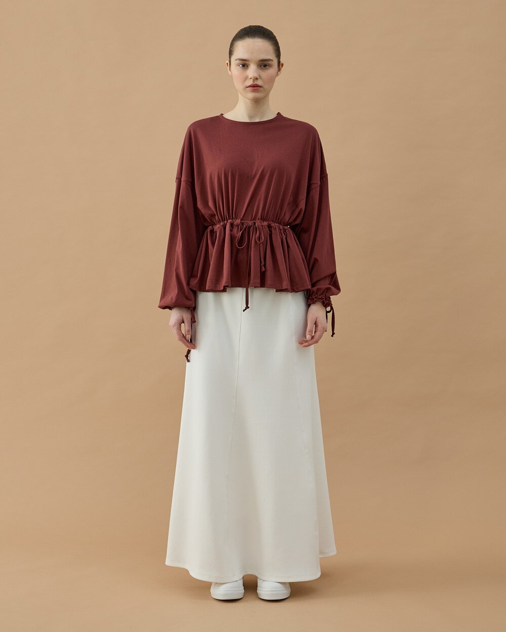 Rahat kalıbı ve modern tasarımıyla öne çıkan bu bluz, bel kısmındaki büzgü detayı sayesinde feminen ve hareketli bir görünüm sunar. Ayarlanabilir bağlama detayı vücuda göre form verilmesini sağlarken, uzun kol ve rahat kesim yapısı gün boyu konforlu kullanım sunar. Günlük stilinize modern bir dokunuş katacak bu model, etek ve pantolonlarla kolayca kombinlenebilir.