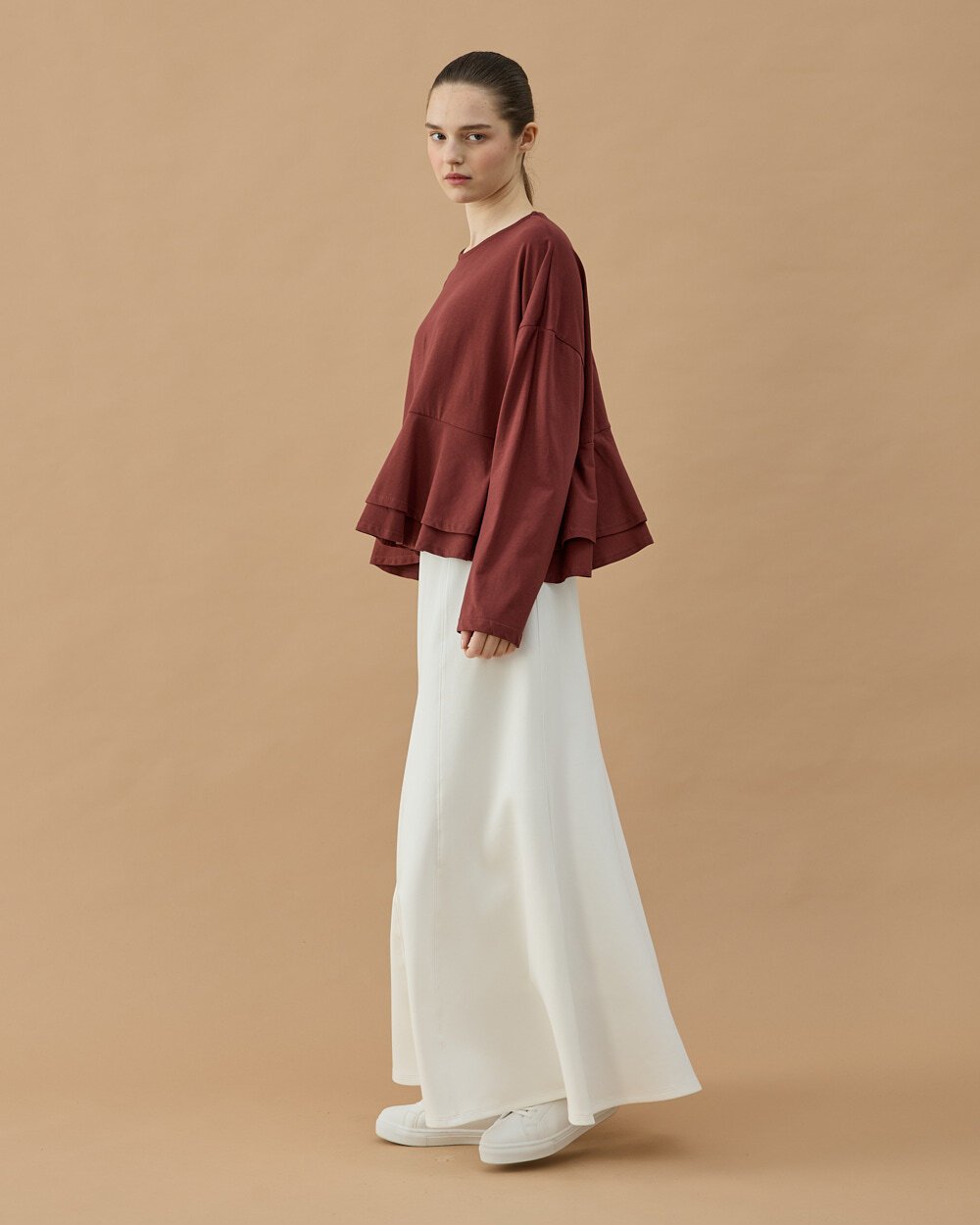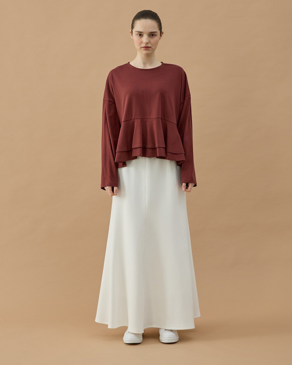 * Çift kat volan detaylı etek ucu