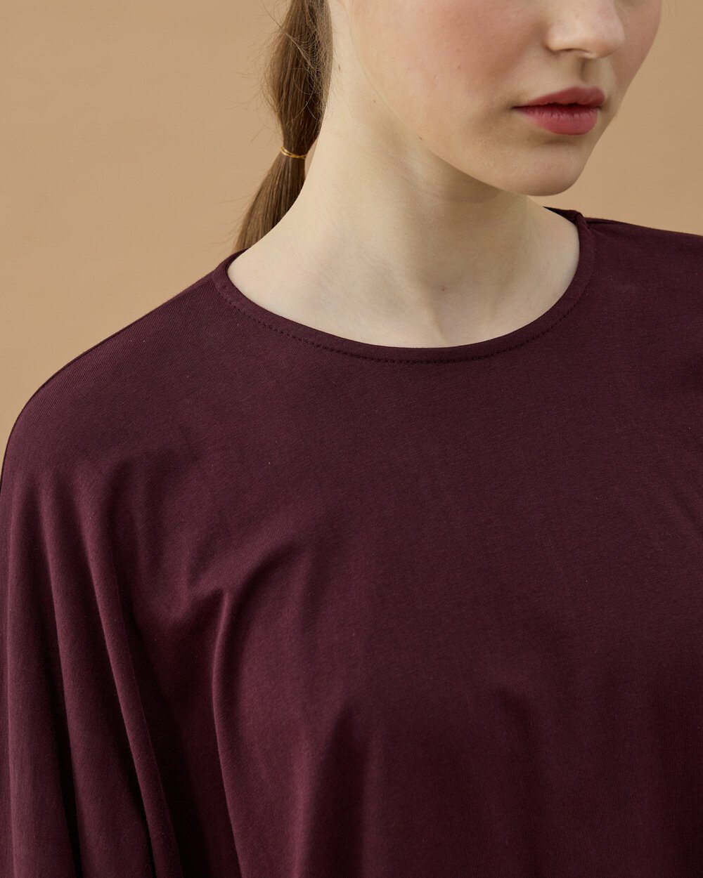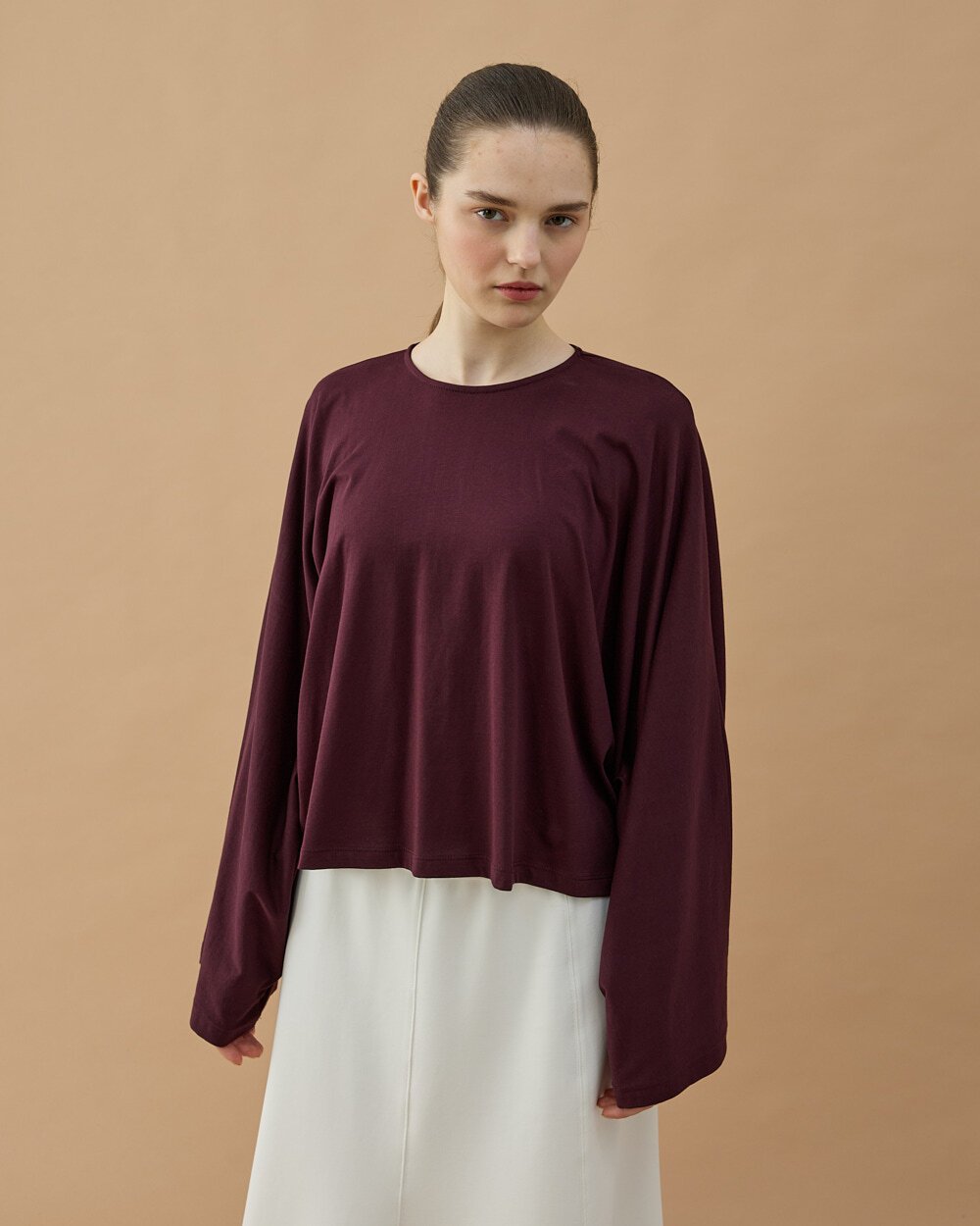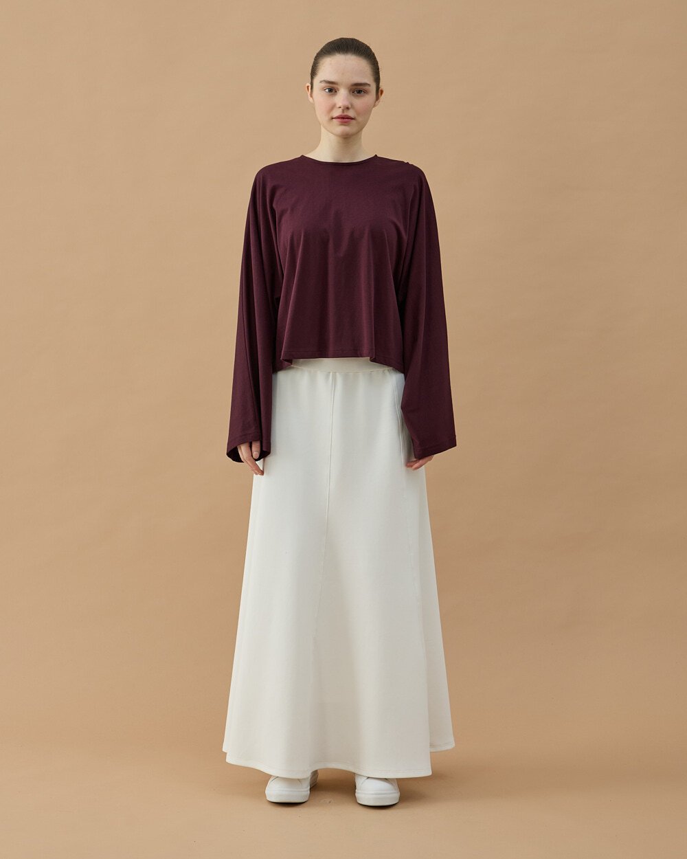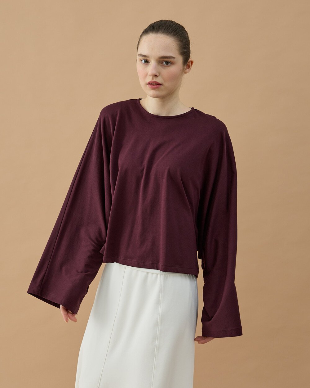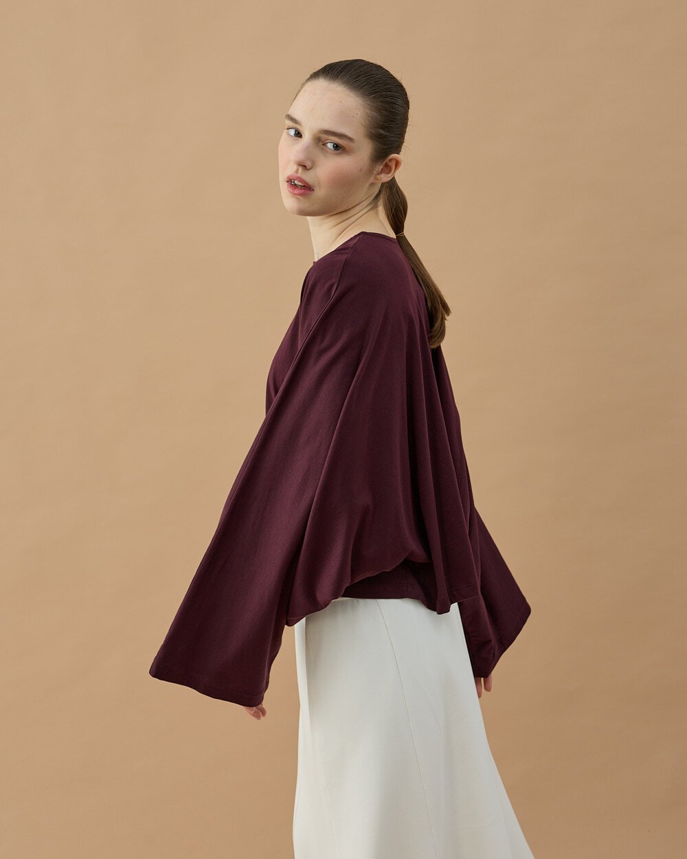 Modern ve minimal tasarımıyla öne çıkan bu crop bluz, rahat kalıbı ve akıcı kumaş yapısıyla gün boyu konfor sağlar. Pelerin formundaki geniş kol tasarımı sayesinde hareketli ve zarif bir görünüm sunar. Crop boy kesimi sayesinde etek ve pantolonlarla kolayca kombinlenebilir.
