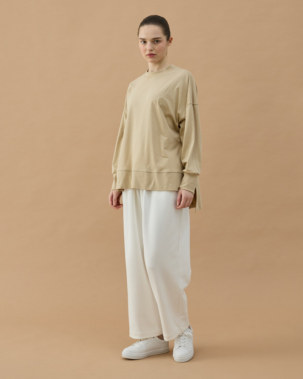 Günlük stilin vazgeçilmez parçalarından biri olmaya aday bu bluz, rahat kalıbı ve modern duruşuyla öne çıkar. Yumuşak dokulu kumaşı gün boyu konfor sağlarken, yan yırtmaç detayı hareket özgürlüğü kazandırır ve dinamik bir görünüm sunar. Düşük omuz formu ve uzun kol yapısı sayesinde hem spor hem şehir stiline kolayca uyum sağlar.