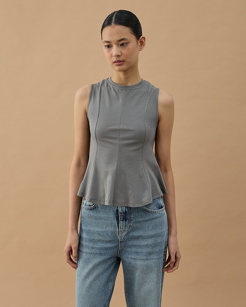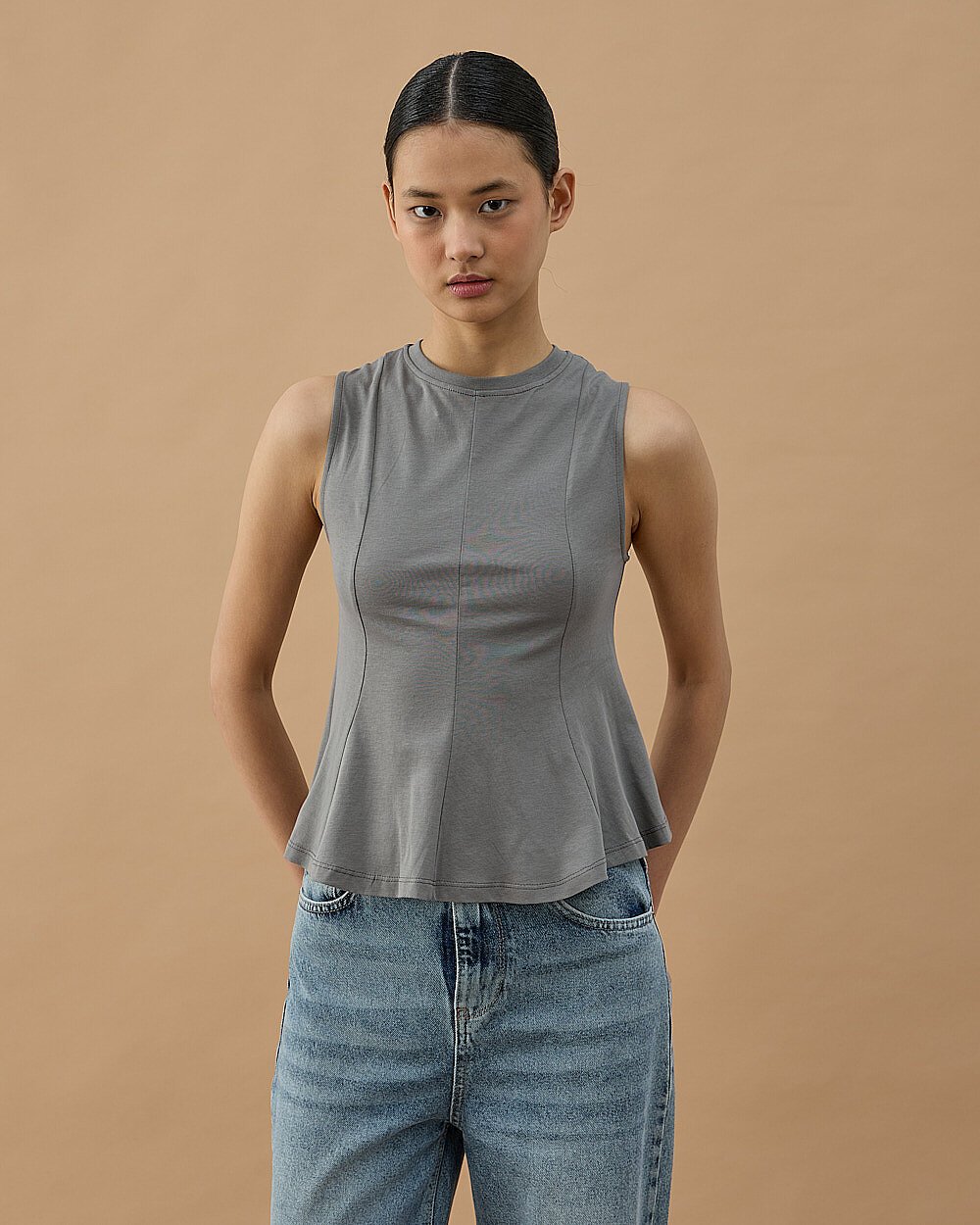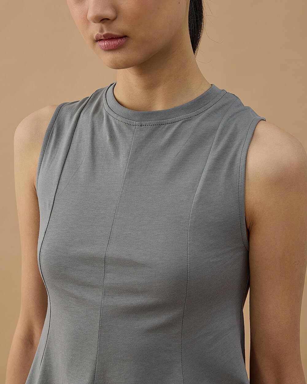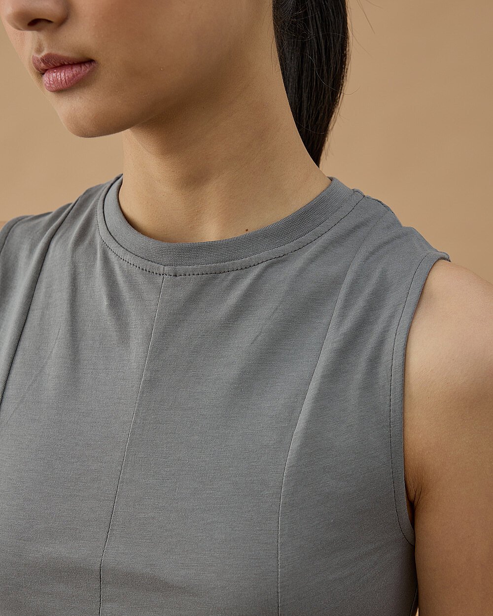 Yüksek Yaka Kolsuz Body Ekru