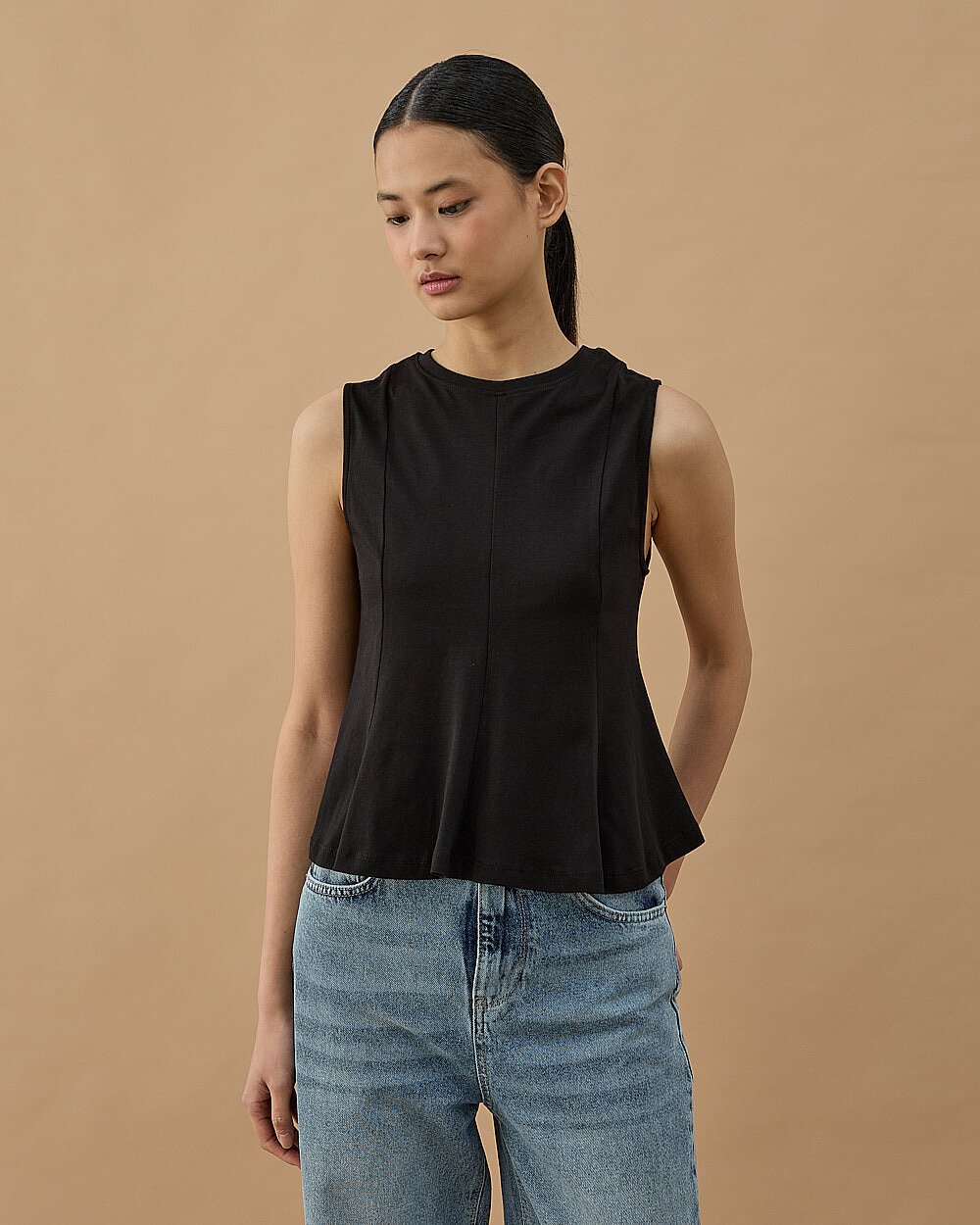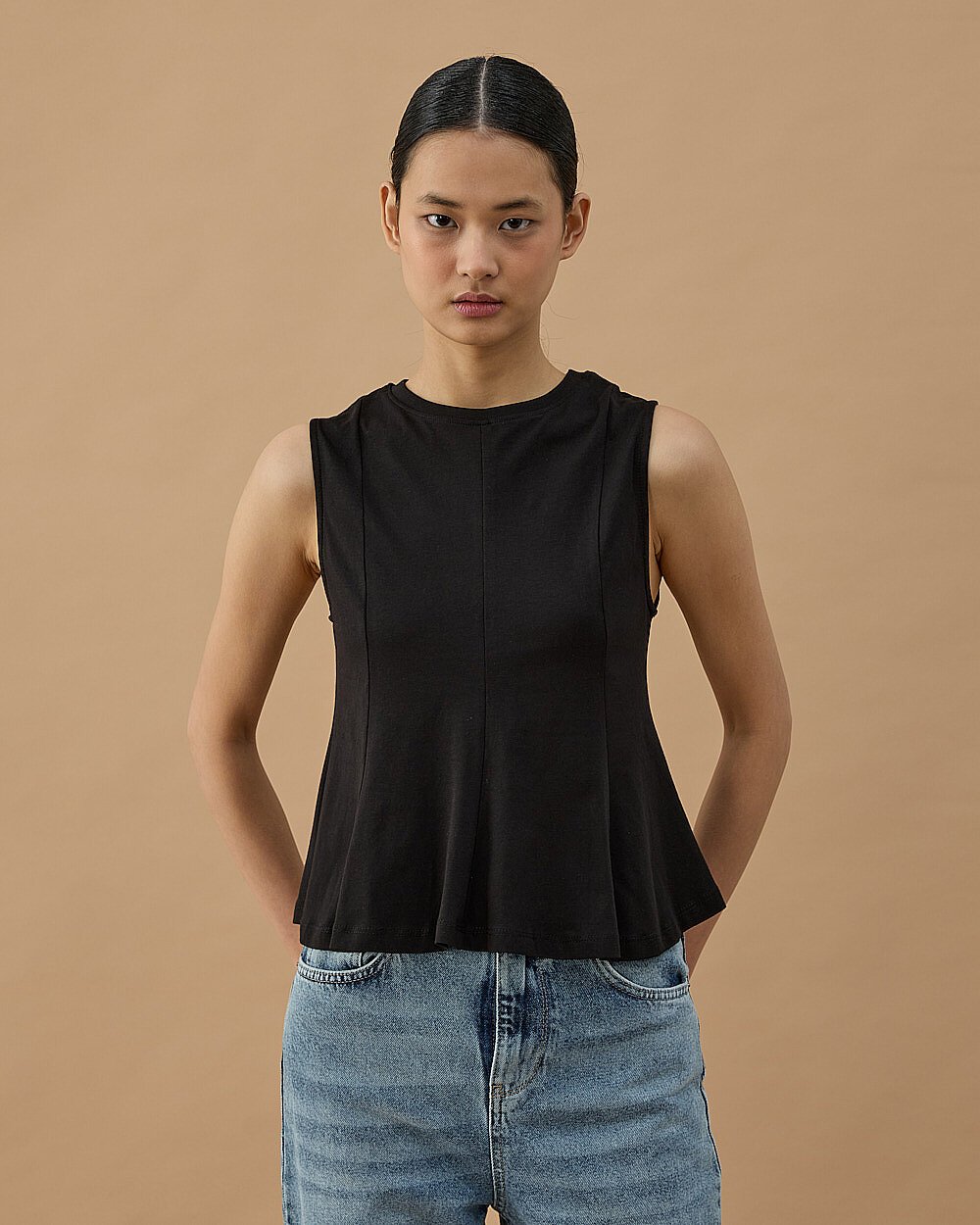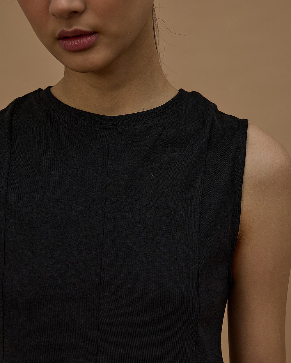 Yüksek Yaka Kolsuz Body Ekru