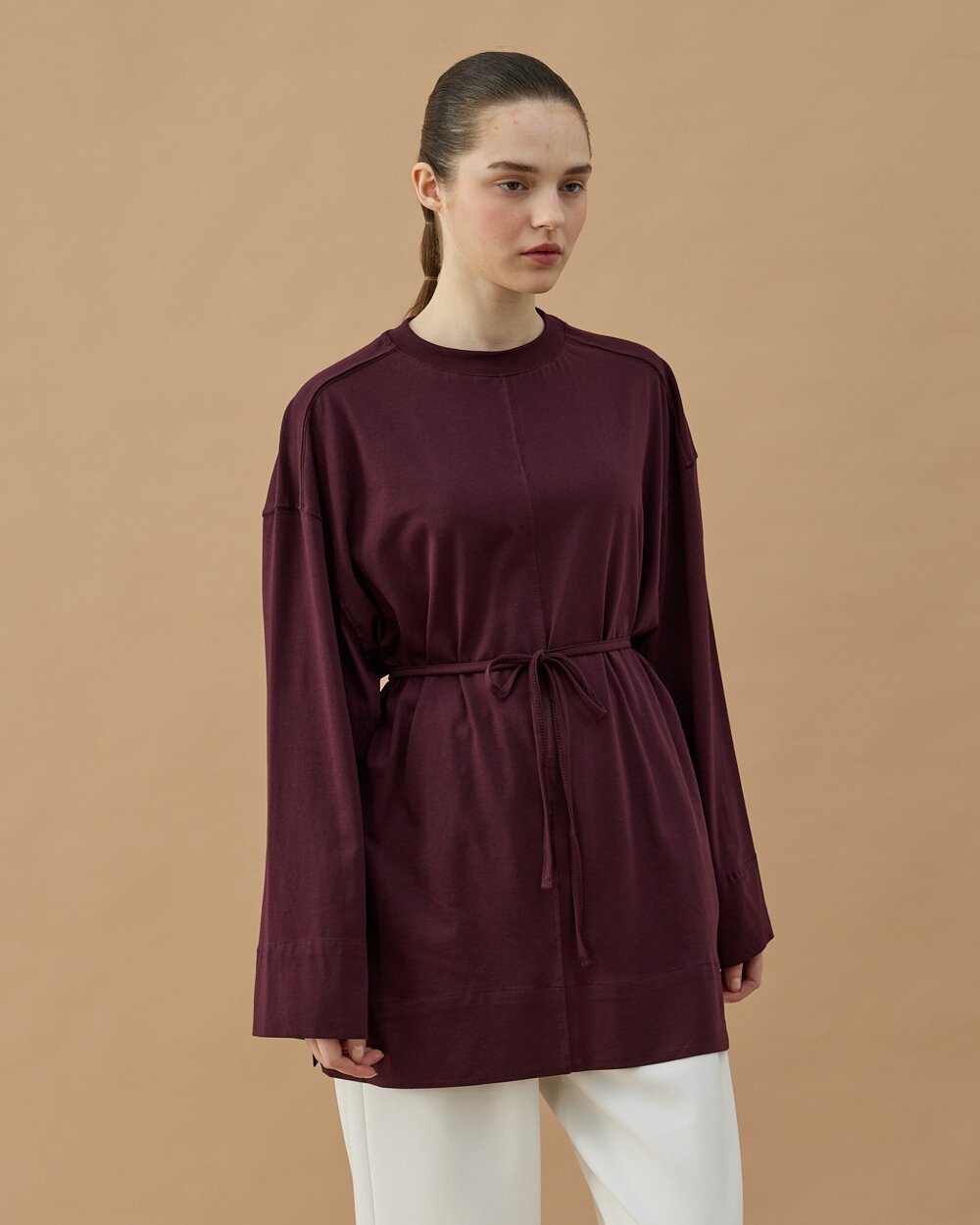 Minimal ve modern tasarımıyla öne çıkan bu tunik, rahat kalıbı ve akıcı kumaş yapısıyla gün boyu konfor sağlar. Bel kısmındaki ayarlanabilir bağlama detayı sayesinde vücuda göre şekil alarak zarif bir siluet oluşturur. Uzun tunik formu sayesinde pantolonlarla rahatça kombinlenebilir ve günlük stilinize şık bir dokunuş katar.