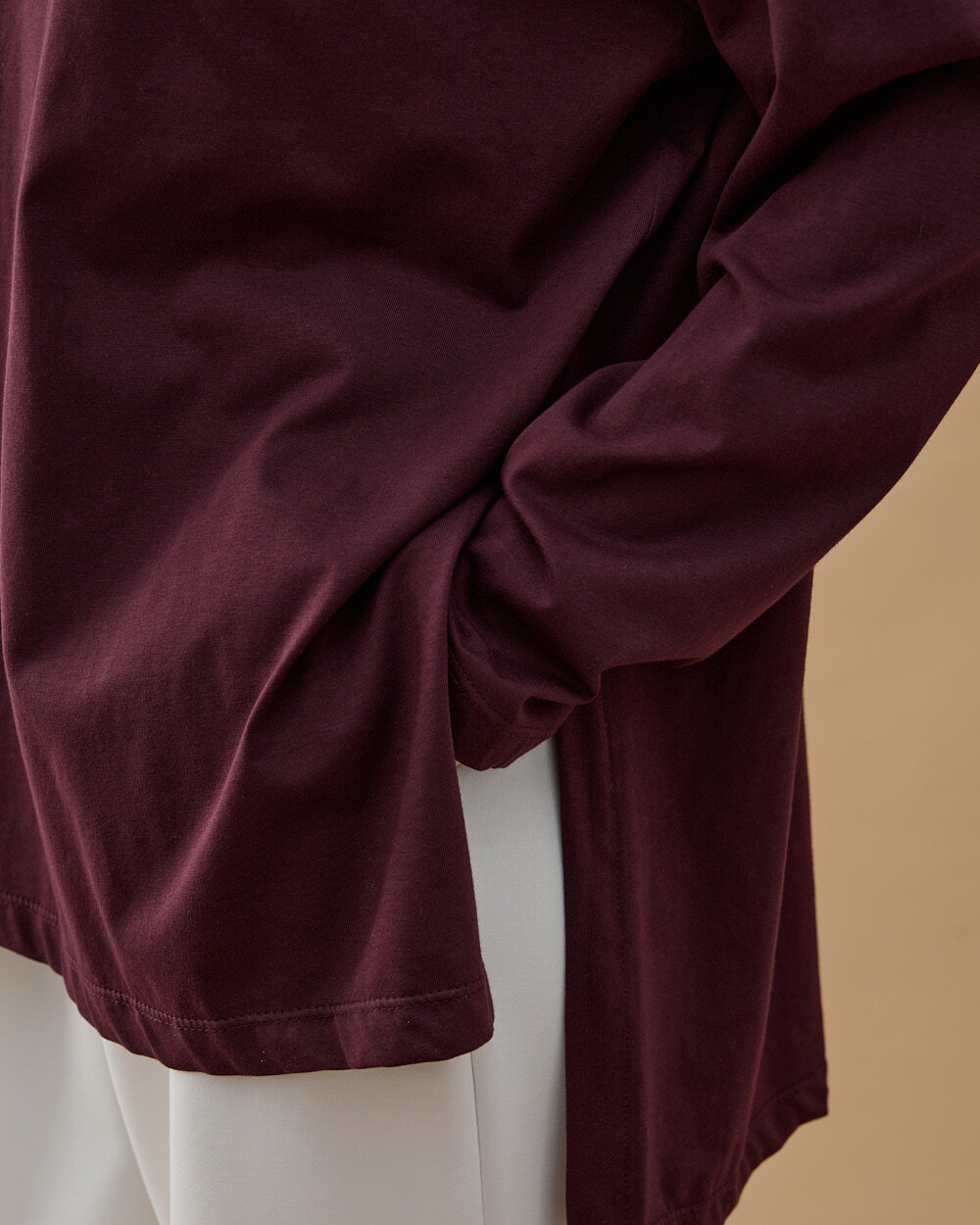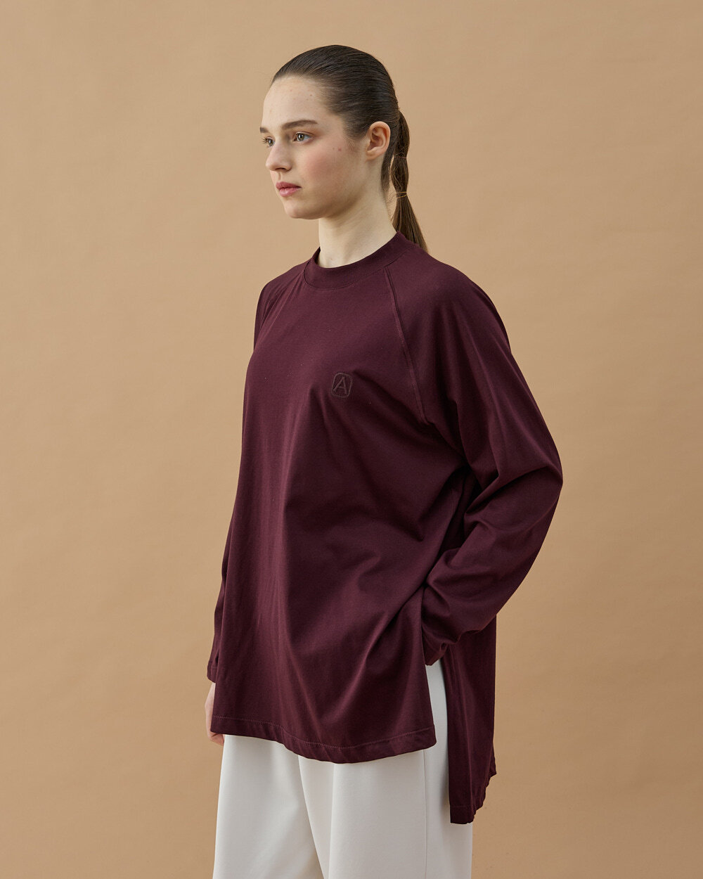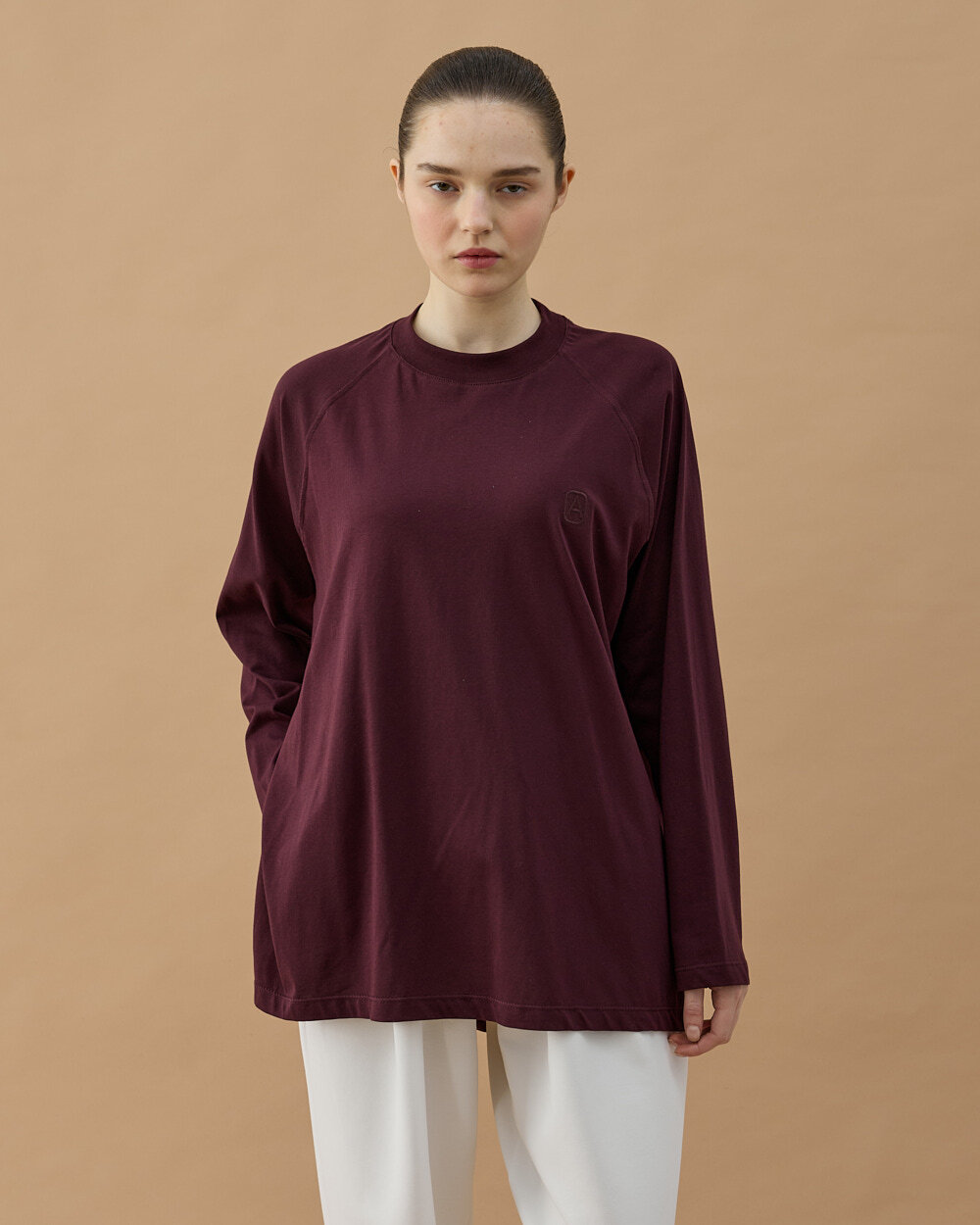 Reglan kol kesimi ile omuz hattında daha yumuşak ve sportif bir görünüm sağlarken, geniş kalıbı hareket özgürlüğünü artırır. Yan yırtmaç detayı ürüne dinamik bir duruş kazandırırken, uzayan arka boyu farklı alt parçalarla rahatlıkla kombinlenmesine olanak tanır. Minimal nakış detayı ise sade şıklığı tamamlar.