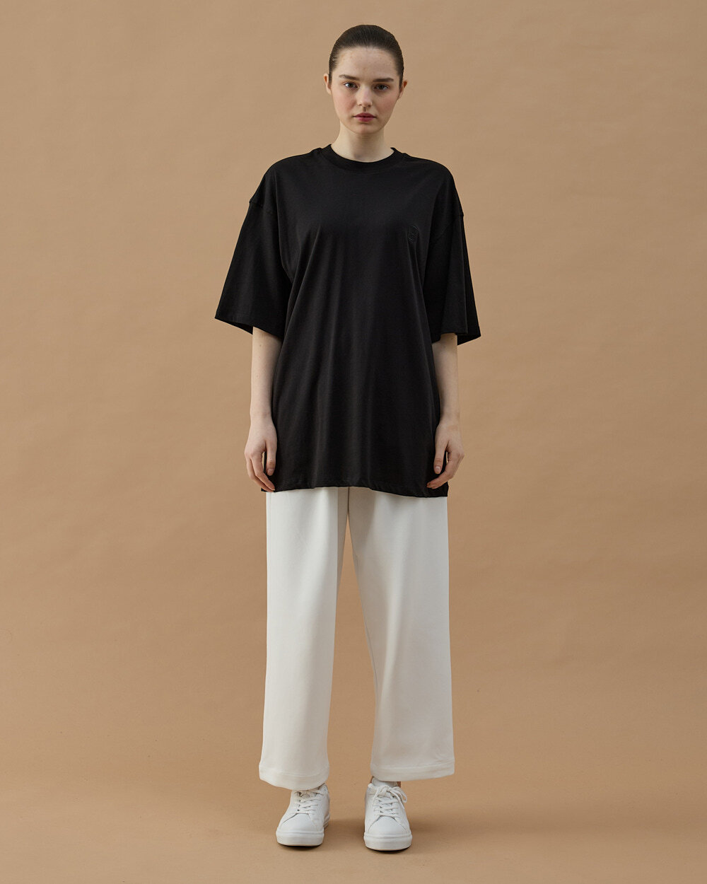 Minimal çizgisi ve rahat kalıbıyla günlük stilin en kurtarıcı parçalarından biridir. Yumuşak dokulu kumaşı gün boyu konfor sağlarken, oversize formu modern ve salaş bir görünüm sunar. Bisiklet yaka detayı ve yarım kol kesimiyle hem tek başına hem kombinlerin tamamlayıcısı olarak kullanılabilir. Jean, eşofman ve eteklerle kolayca uyum sağlar.
