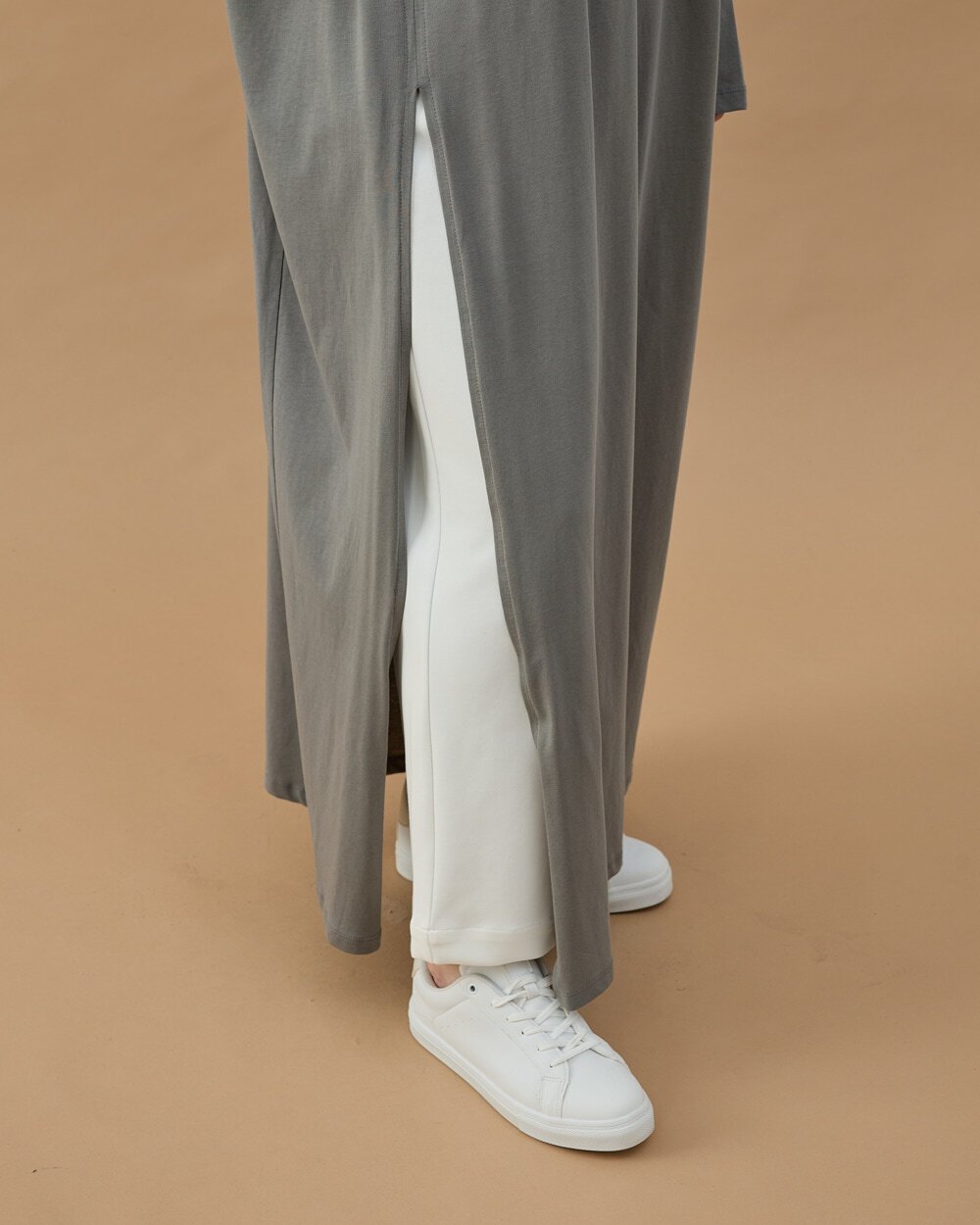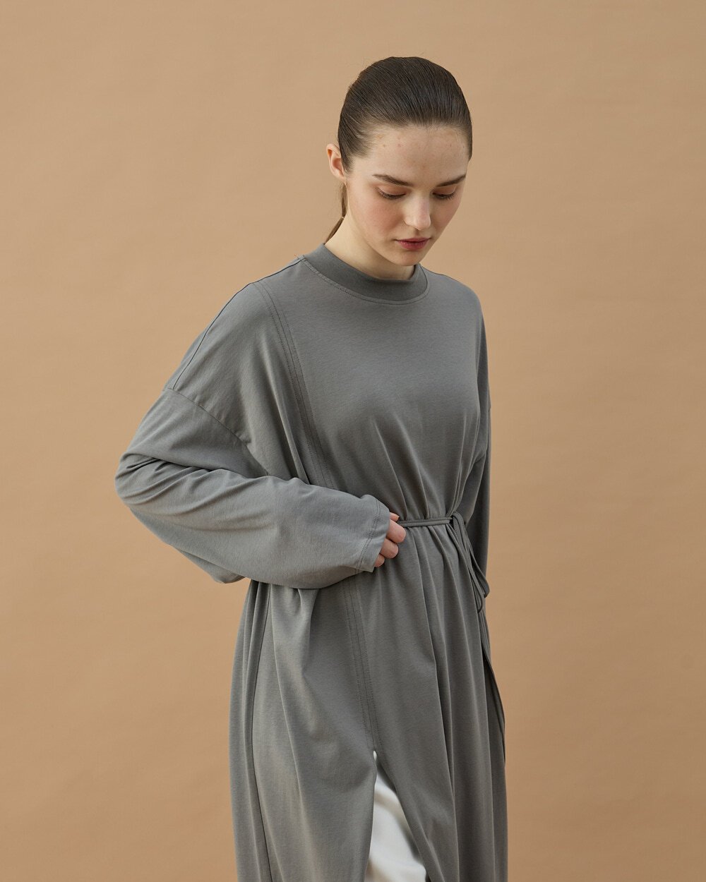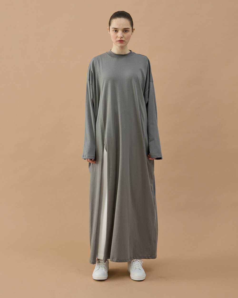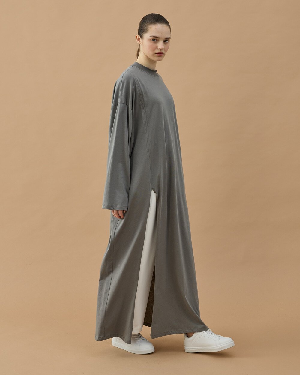 Rahat kalıbı ve modern tasarımıyla öne çıkan bu uzun elbise, akıcı kumaş yapısı sayesinde gün boyu konfor sunar. Bel kısmındaki ayarlanabilir bağlama detayı sayesinde vücuda göre şekil alarak zarif bir görünüm oluşturur. Uzun ve dökümlü formu ile hem günlük kullanımda hem de şık kombinlerde rahatlıkla tercih edilebilir.
